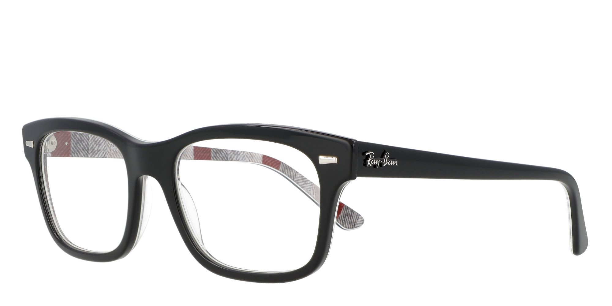 Ray-Ban imparts a classic design to these bold RX5383 eyeglasses. The thick rectangular frames are made in lightweight acetate, a durable but sturdy plant based plastic. The saddle bridge distributes the weight of the frames evenly across the face to reduce pressure for comfort. The skull temples curve inward and widen at the tips for stability and grip behind the ears. Adorned with a raised Ray-Ban logo at the temple and rivet detailing at the endpoints, these RX5383 glasses offer timeless style for the modern professional.