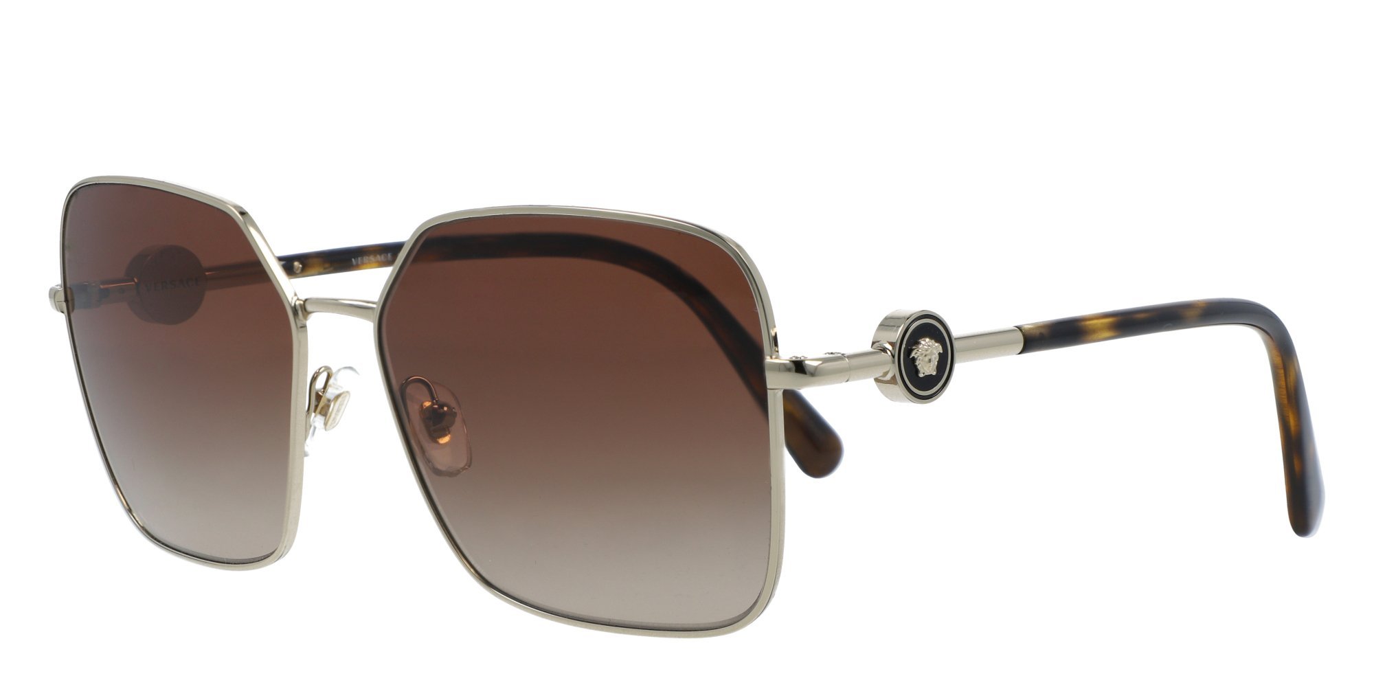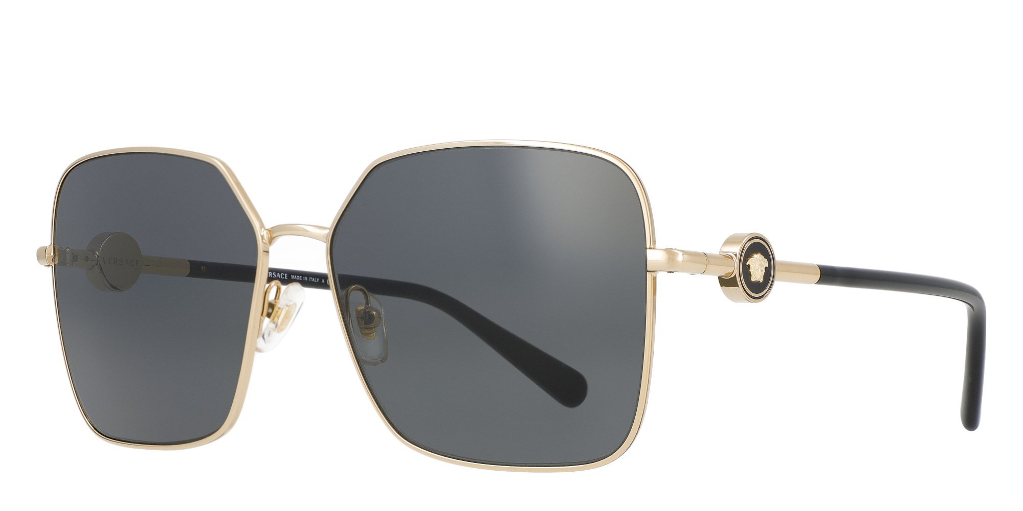 Turn heads when you step out in the Versace VE2227 sunglasses. The eye catching wireframe design features oversized, rounded square rims and a creative bridge for couture shades the woman with adventurous style preferences will love. The understated icon at the hinge adds just a touch of designer interest. The slimline temples feature acetate socks on the tips for a secure, comfortable fit. Revamp your wardrobe with these sunglasses from Versace.