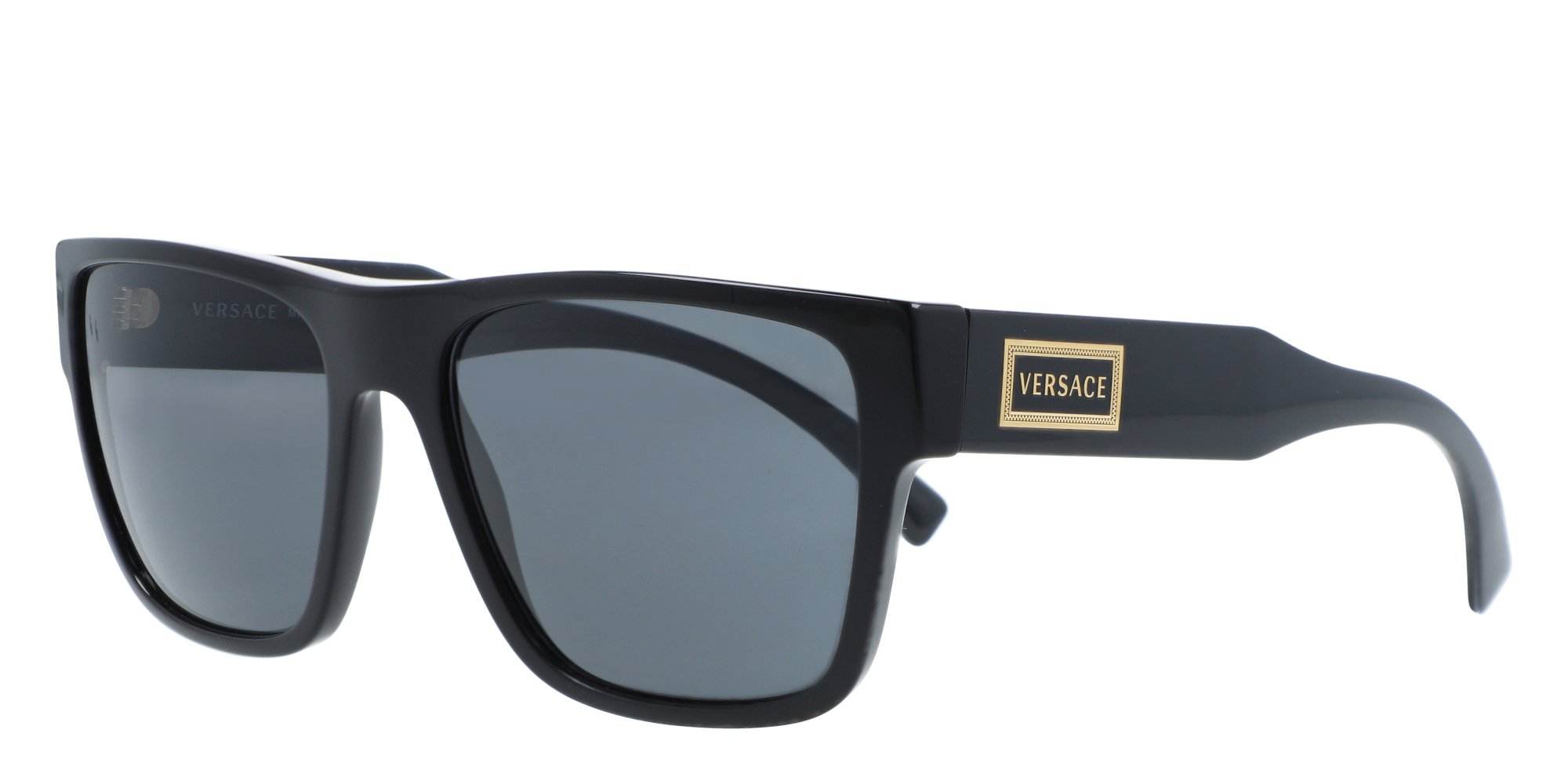Supple curves, clean lines, and fashion forward styles are hallmarks of the Versace brand, and these VE4379 sunglasses make a fitting example. The bold, square frames come in lightweight, durable acetate that retains its luster for lasting good looks. The robust temples are molded over the ears for comfort, and widen at the tips for stability. A signature metallic logo plate at the temple adds luxury appeal to these cool shades.