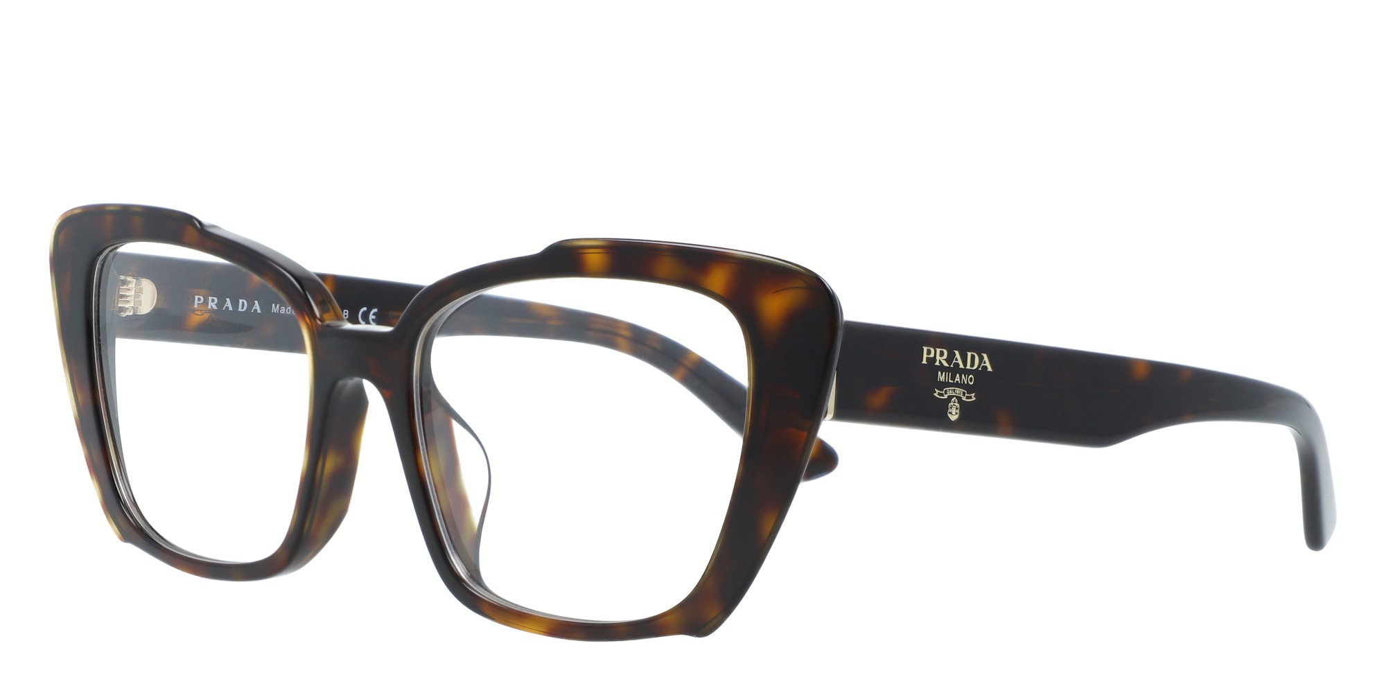 Prada shows its forward thinking approach to style in these unusual PR 01YVF eyeglasses for women. The unique cat eye frames are made in lightweight acetate, a durable plant based plastic that retains its high luster for lasting beauty. A saddle bridge distributes the weight of the frames evenly across the face to reduce pressure for comfort. The sleek temples curve inward gently for stability behind the ears, and boast signature branding near the brow end for designer appeal. Opt for the PR 01YVF from Prada and enjoy unconventional glasses with a timeless twist.
