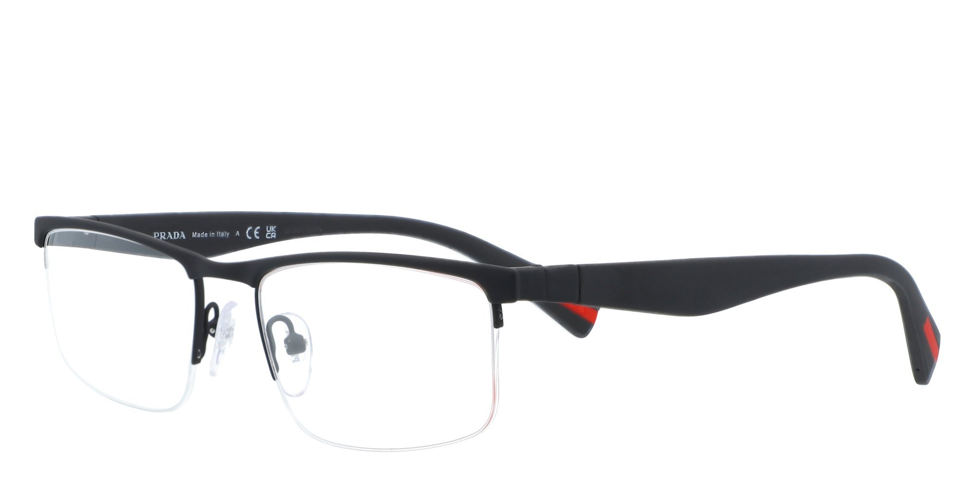 Prada combines its legacy of haute couture with modern technology in the PS 52FV eyeglasses. Crafted in a durable metal alloy, these distinctive semi rimless eyeglasses showcase a sophistication synonymous with the Prada name. The dimensions make these frames comfortable for wearers with high cheekbones and a lower nose bridge. If youre looking for eyewear with uncompromising style, these streamlined semi rimless eyeglasses by Prada wont disappoint.