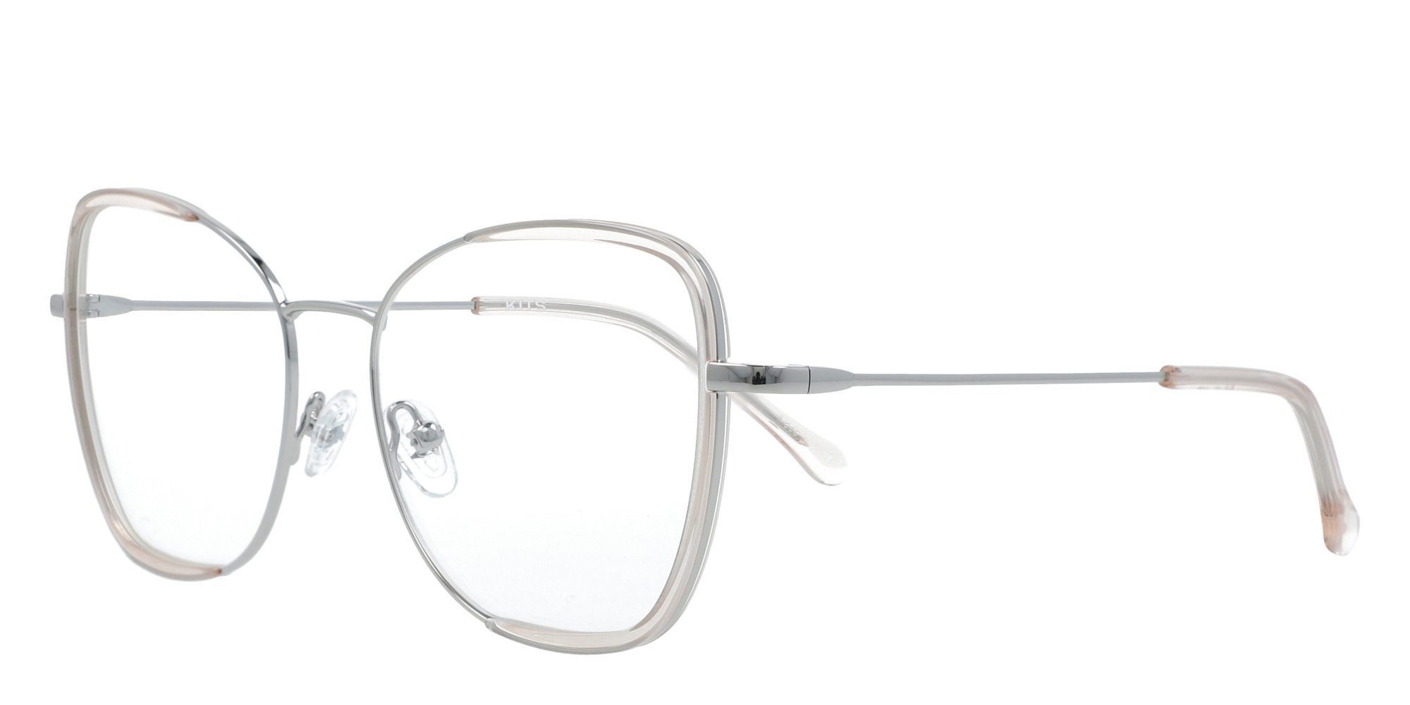 Make an entrance wearing the Kits Flutter eyeglasses. The cat eye frames feature the style's signature curvilinear browline for a sophisticated, feminine look. Crafted in lightweight but sturdy metal, the Flutter frames resist corrosion for added durability. The temples feature sturdy barrel hinges and plastic coated tips for a secure, comfortable fit. Elevate your everyday wardrobe with these alluring eyeglasses from Kits.