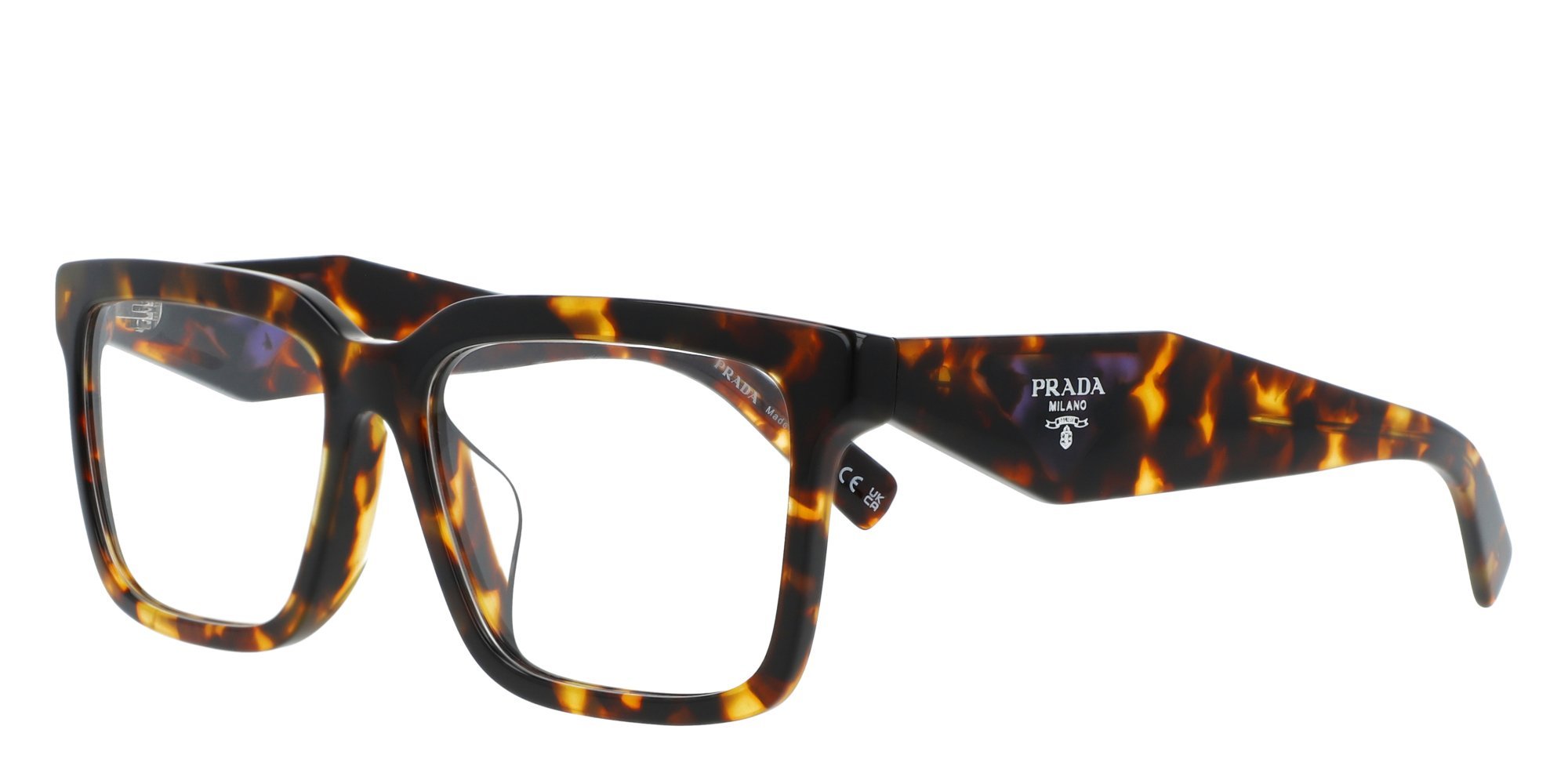 Prada combines traditional design with contemporary flair in these robust PR 10YVF eyeglasses. The full rim frames are crafted from lightweight acetate thats durable enough to keep up with your busiest day. The rectangular rims and saddle bridge look smart and professional. And the appealing shark fin temples with signature Prada logo add elegance. For work or play, these PR 10YVF glasses are a stylish choice.