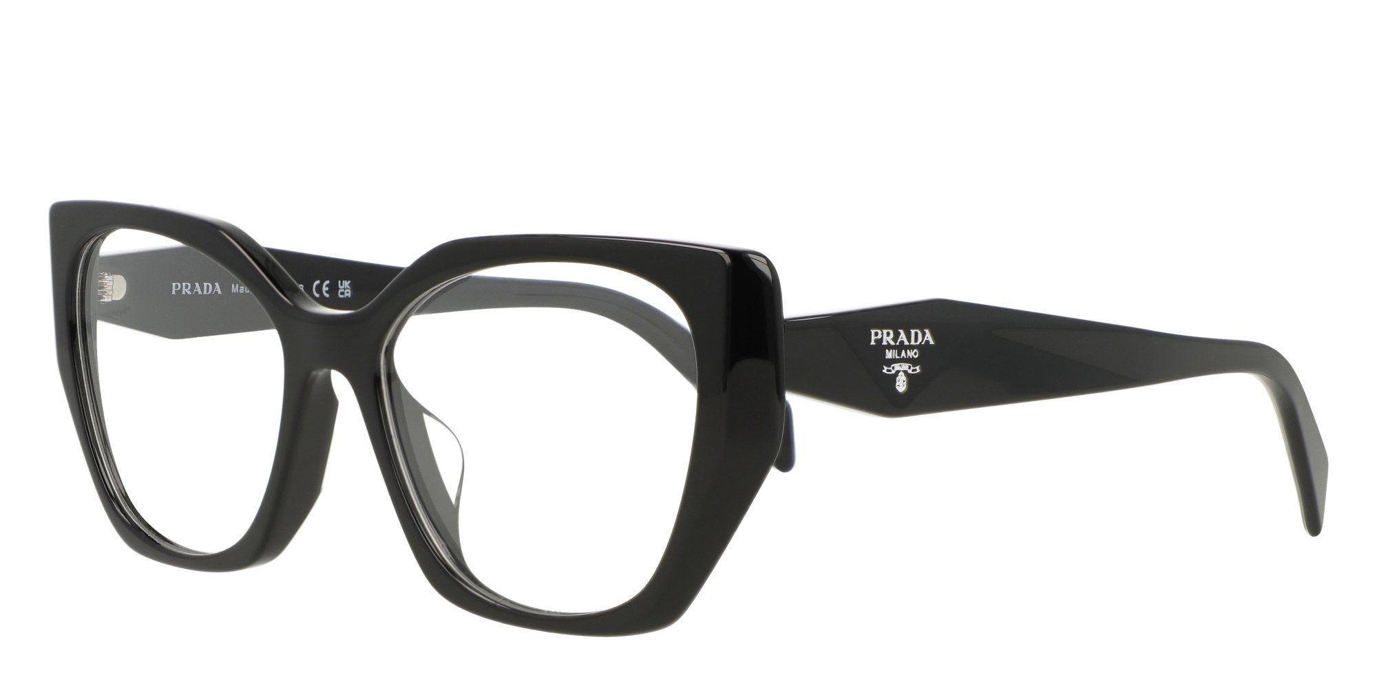 Prada PR 18WVF - The Prada PR 18WVF eyeglasses offer the sophisticated fashionista statement making style. Prada updates the classic rectangular silhouette with chunky, upswept endpoints and a softly angled brow line for frames that suggest the timeless cat eye. The flat temples taper from the brow ends and widen at the tips for comfort, and the signature logo adds designer flair. Crafted in hypoallergenic acetate, the PR 18WVF features flexible wire core temples that adjust easily for a custom fit. Elevate your everyday attire wearing these eye catching Prada glasses.