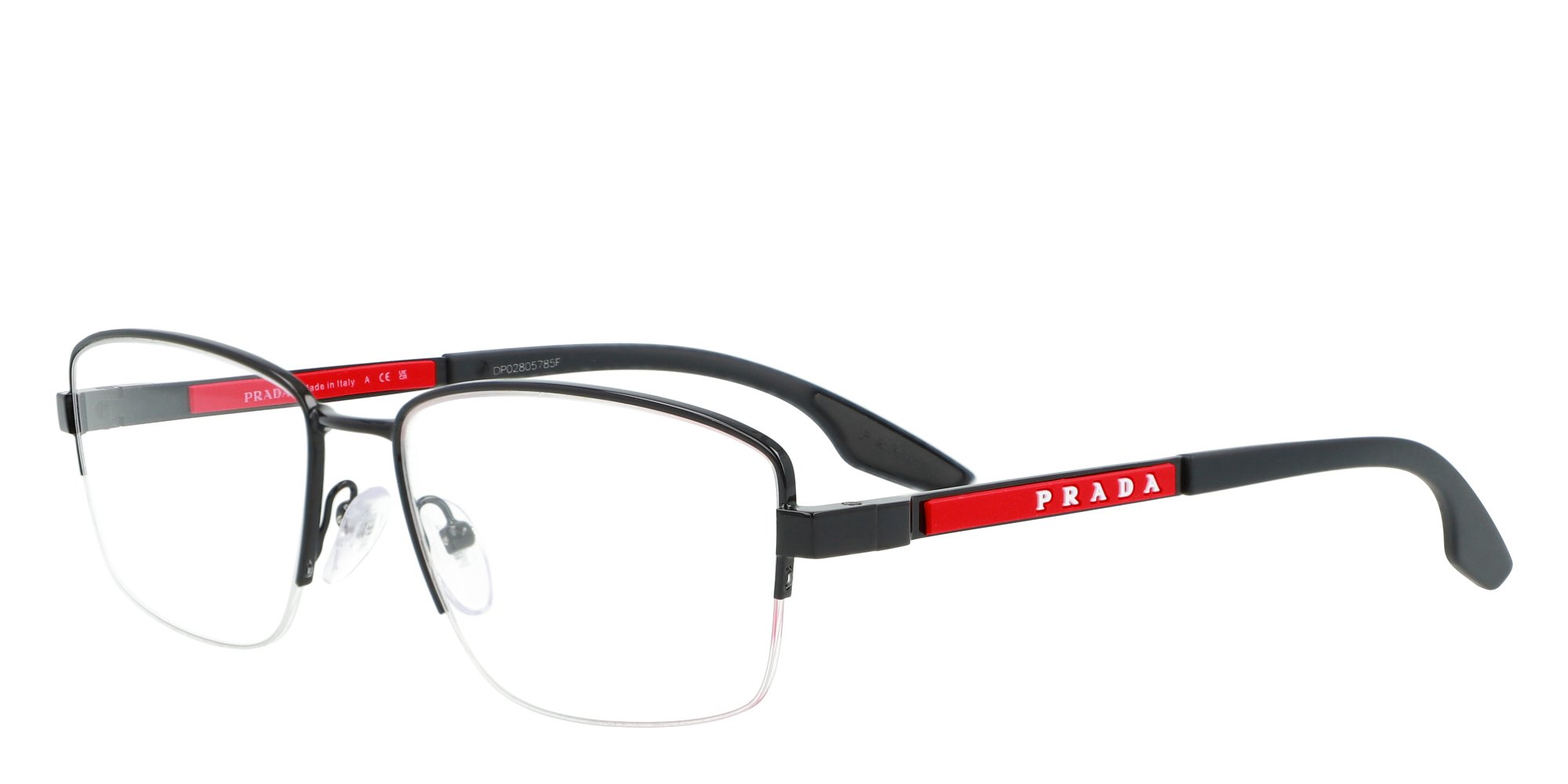 The Prada PS 510V eyeglasses offer sporty but timeless style for the wearer with classic tastes. These rectangular semi rimless frames flatter most wearers and feature a slim browline. Made in lightweight but sturdy metal, the glasses resist corrosion and retain their shape. The streamlined temples curve inward gently for all day comfort behind the ears, and showcase the Prada logo for couture flair. Prada outfits these designer frames with easy to repair conventional hinges for extra longevity.