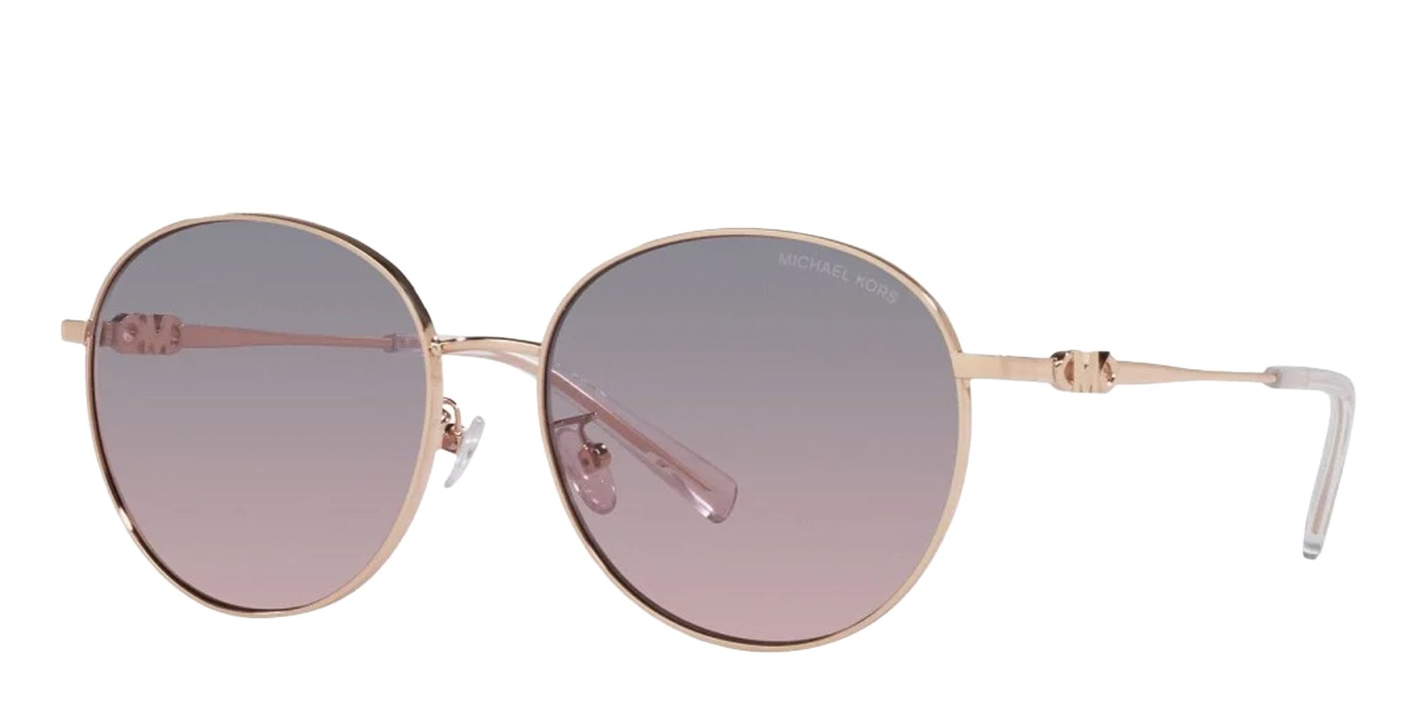The MK1119 sunglasses from Michael Kors are a bold, timeless design. The round frames are made in lightweight, corrosion resistant metal that retains its shape. The slim temples curve inward softly for stability behind the ears and boast a sleek silhouette. With their distinctive center hook detail at the brow end, these sunglasses exude urban chic.