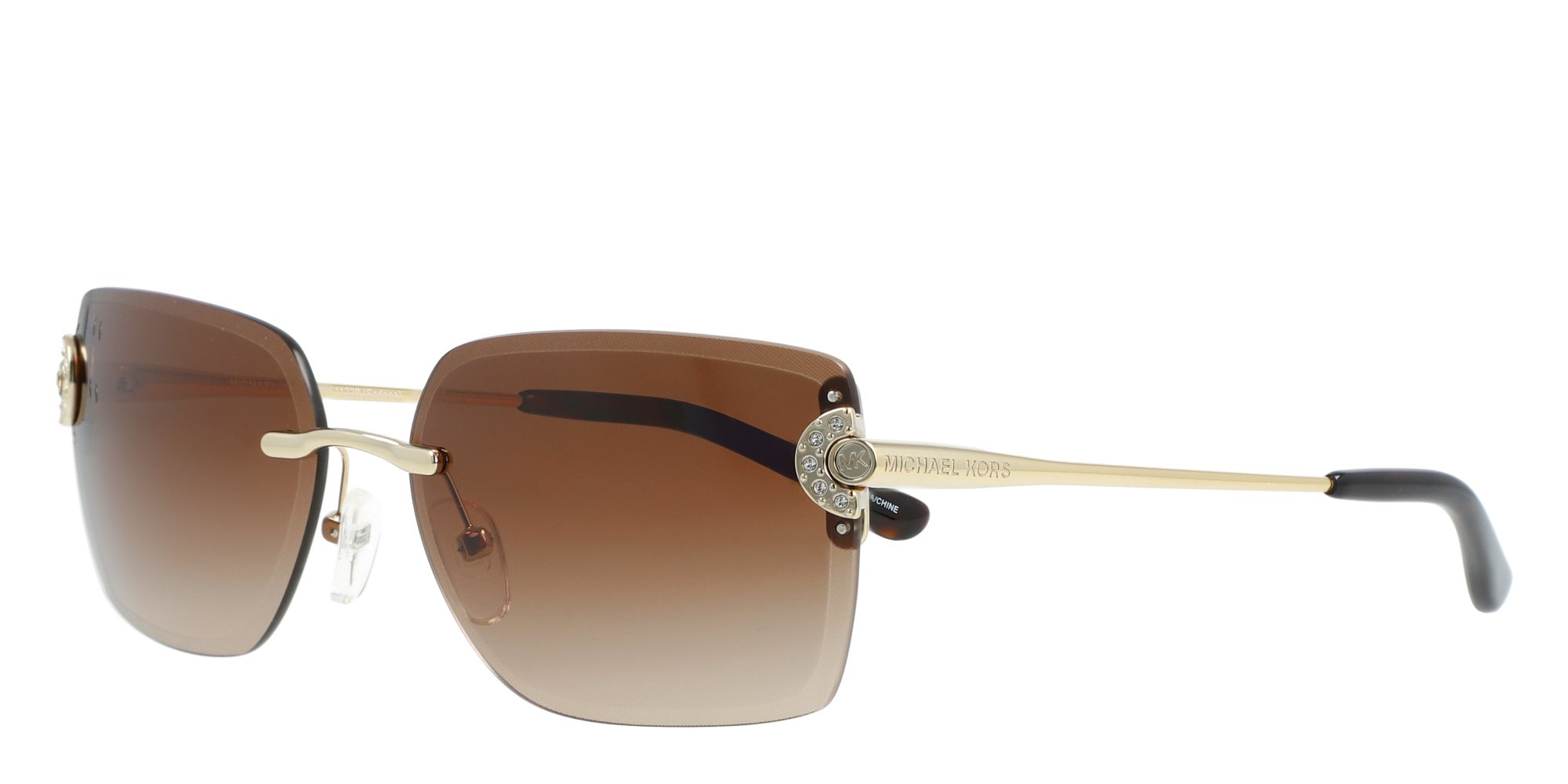 Get on a first-name basis with fashion wearing the Michael Kors MK1122B Sedona sunglasses. These unique full rimless frames are the lastest in bold, unmissable style. Hypoallergenic, molded nose pads provide a comfortable, no pinch fit. Thin, tapered skull temples offer a firm, behind the ear hold, but the acetate material ensures they feel light. These rectangular Michael Kors sunglasses flatter round and square faces. Make a name for yourself in Michael Kors.