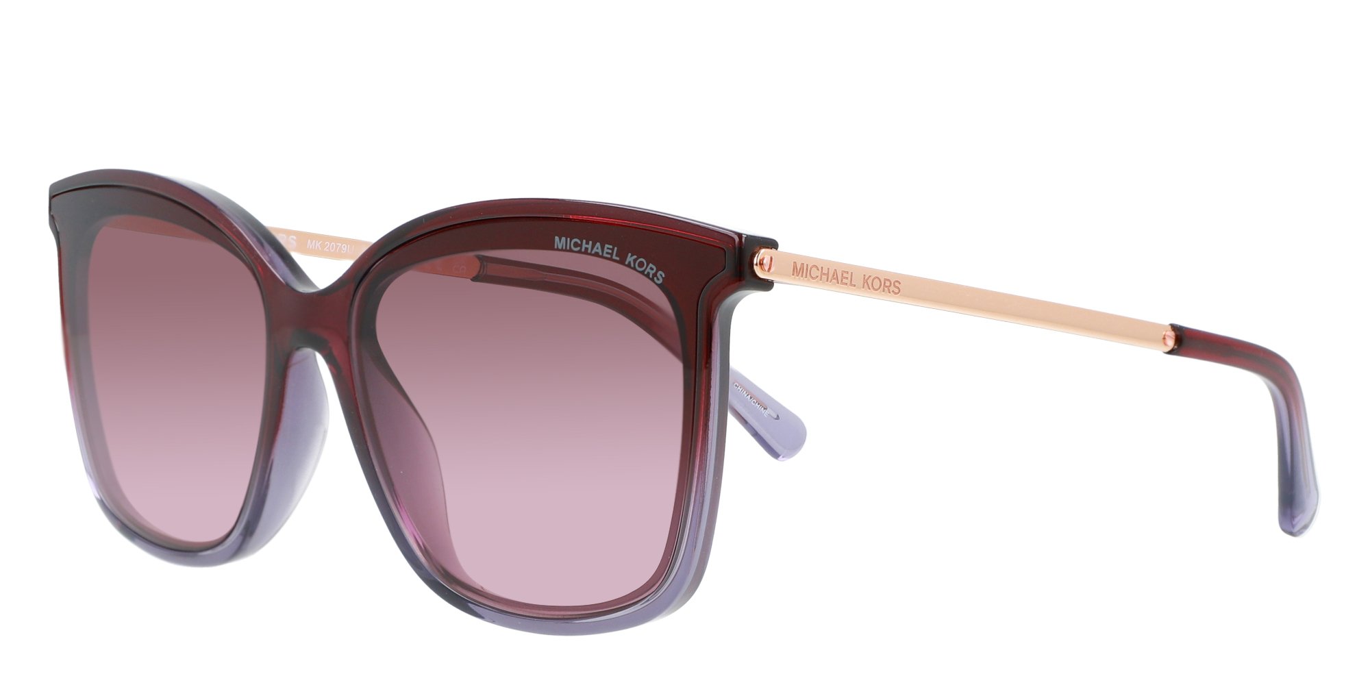 The Michael Kors MK2079U sunglasses offer a chic way to stay on trend. These cate eye frames are made in lightweight, lustrous plastic thats strong and durable, a perfect combination of beauty and strength. The sleek temples curve inward gently for stability behind the ears. Enjoy designer style wherever you go wearing these stunning sunglasses from Michael Kors.
