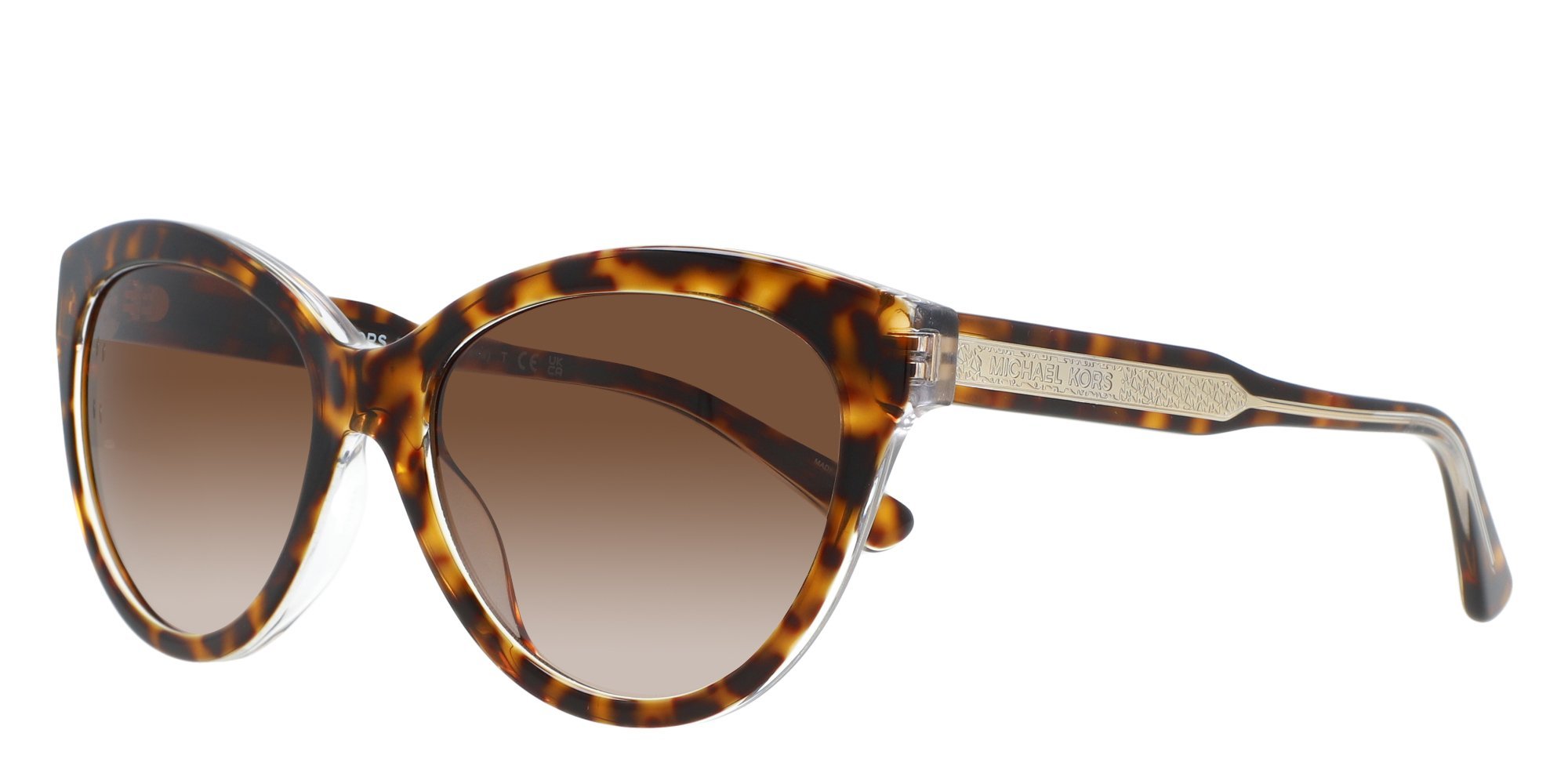 In the MK2158 Makena, Michael Kors reimagines a timeless silhouette with a tropical twist. The oversized rims are made in hypoallergenic, lightweight plastic thats durable against wear and tear. A slim wirecore insert adds strength while reducing weight, the result is sunglasses that feel light and comfortable but stay put throughout your day. Adorned with metallic accents at the brow end, these frames boast retro style points of interest for aesthetic appeal.