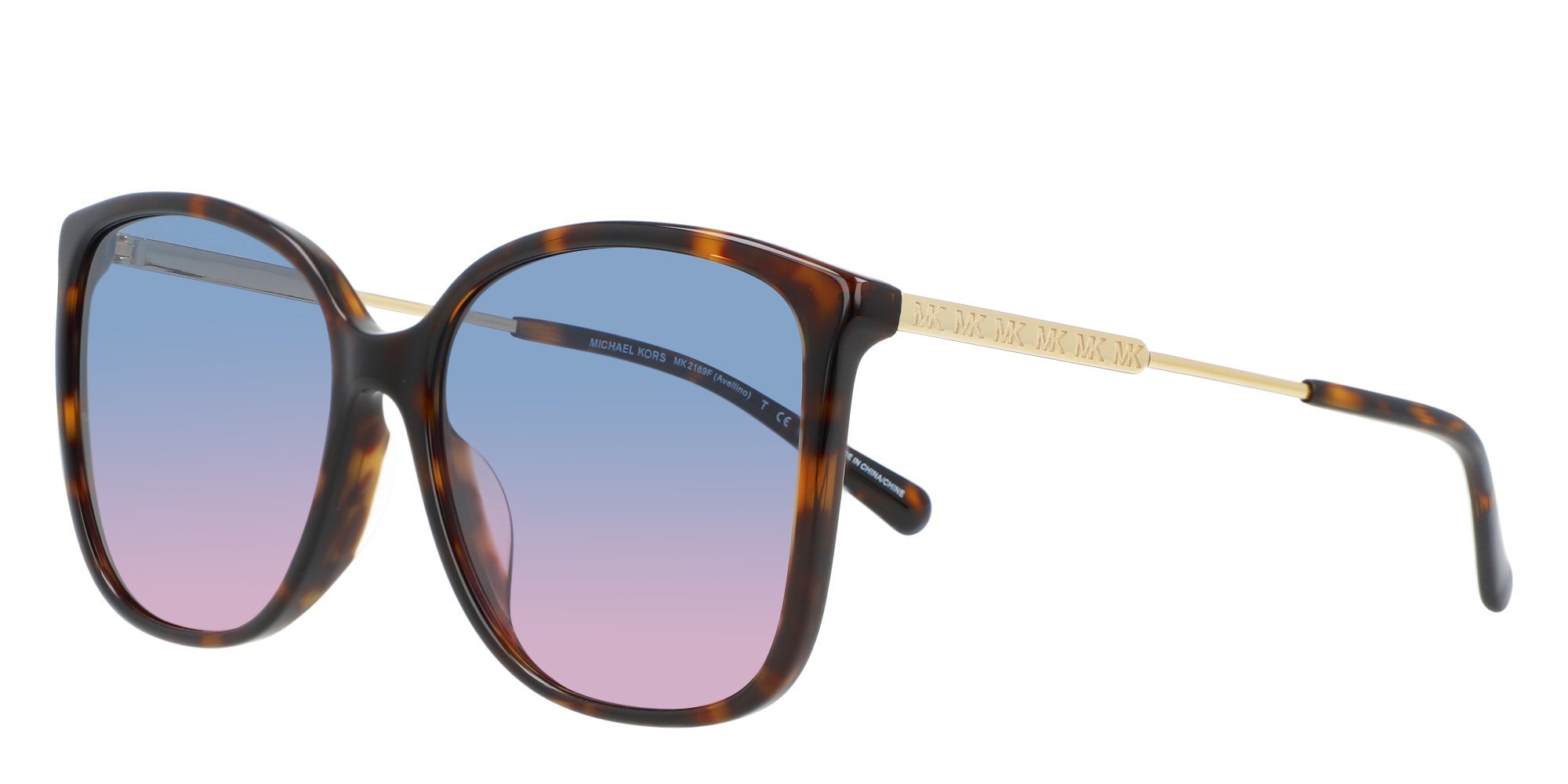 Elevated style and sophistication are the hallmarks of the Michael Kors MK2169F sunglasses. These cat eye frames are made in lightweight, lustrous acetate that's sturdy enough to stand up to heavy wear. The thick metal temples curve inward gently for stability behind the ears with engraved MK repeat logo.