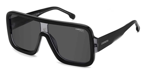 The Flag Lab collection propels Carrera to unprecedented levels of creativity and innovation. With its striking mask-shaped design, featuring prominent acetate frames and the iconic Carrera 'C' plaque on the bridge, this model exudes a captivating futuristic charm. The oversized temples showcase a captivating interplay of transparency, revealing the metal core and proudly displaying the lettering logo.