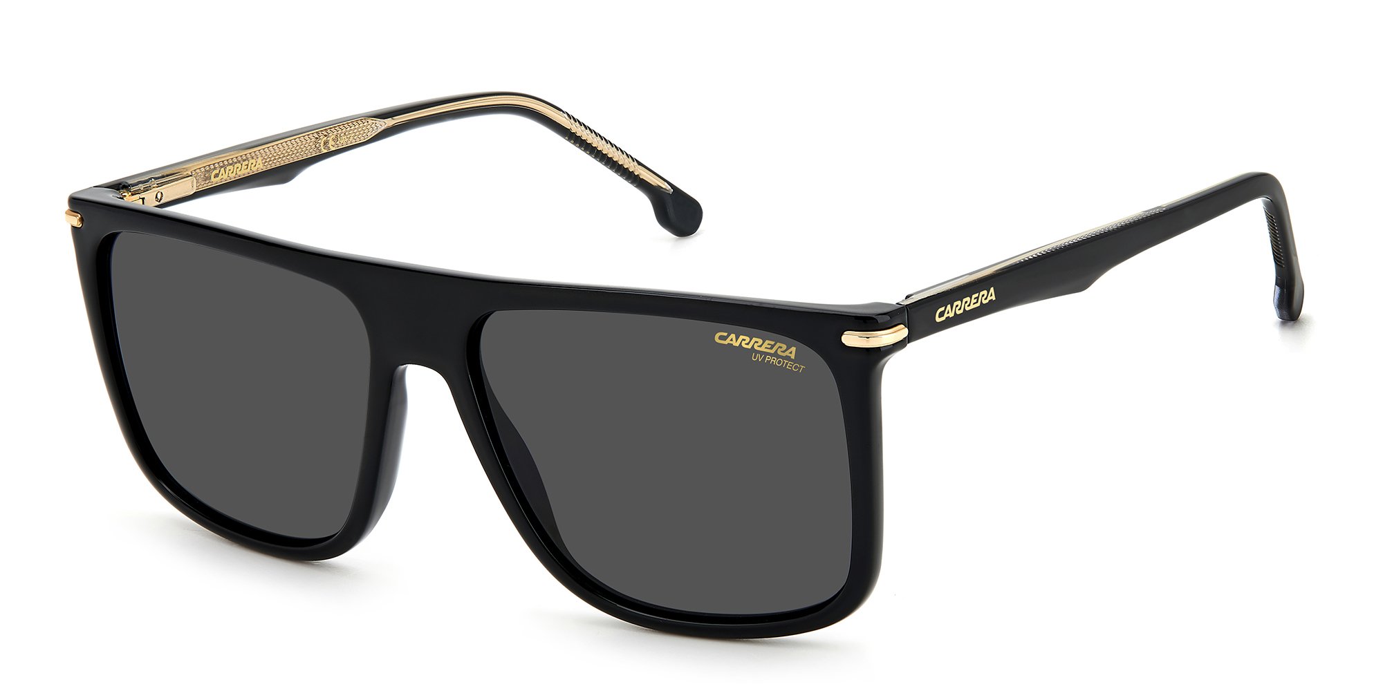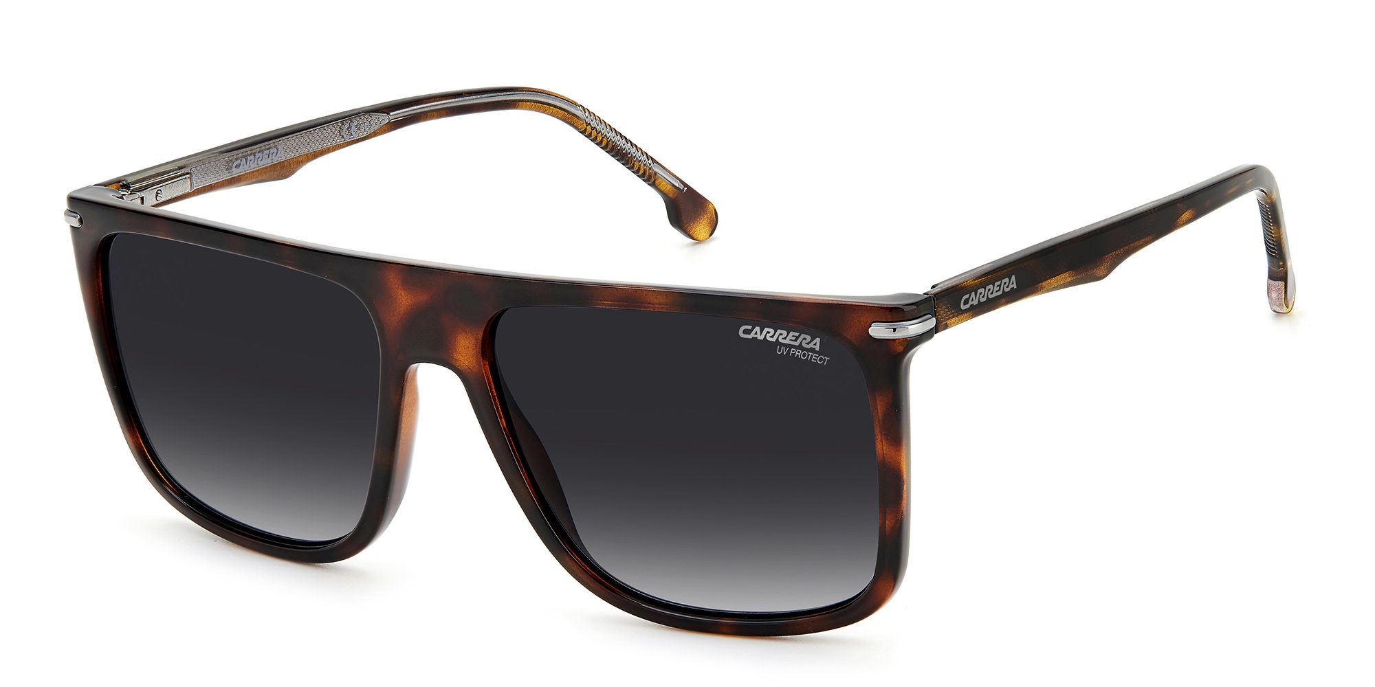 Experience the classic appeal of the Carrera 278/S sunglasses for men, featuring a timeless rectangular silhouette. The thick rims are meticulously crafted from a lightweight and durable plastic material, ensuring resistance against crushing and maintaining their shape over time. The slim temples gracefully curve inward and gradually widen at the tips, providing enhanced stability and comfort behind the ears. Adding a touch of elegance, a metallic emblem is embedded into the temple near the brow end, accentuating the allure of these stylish shades from Carrera.