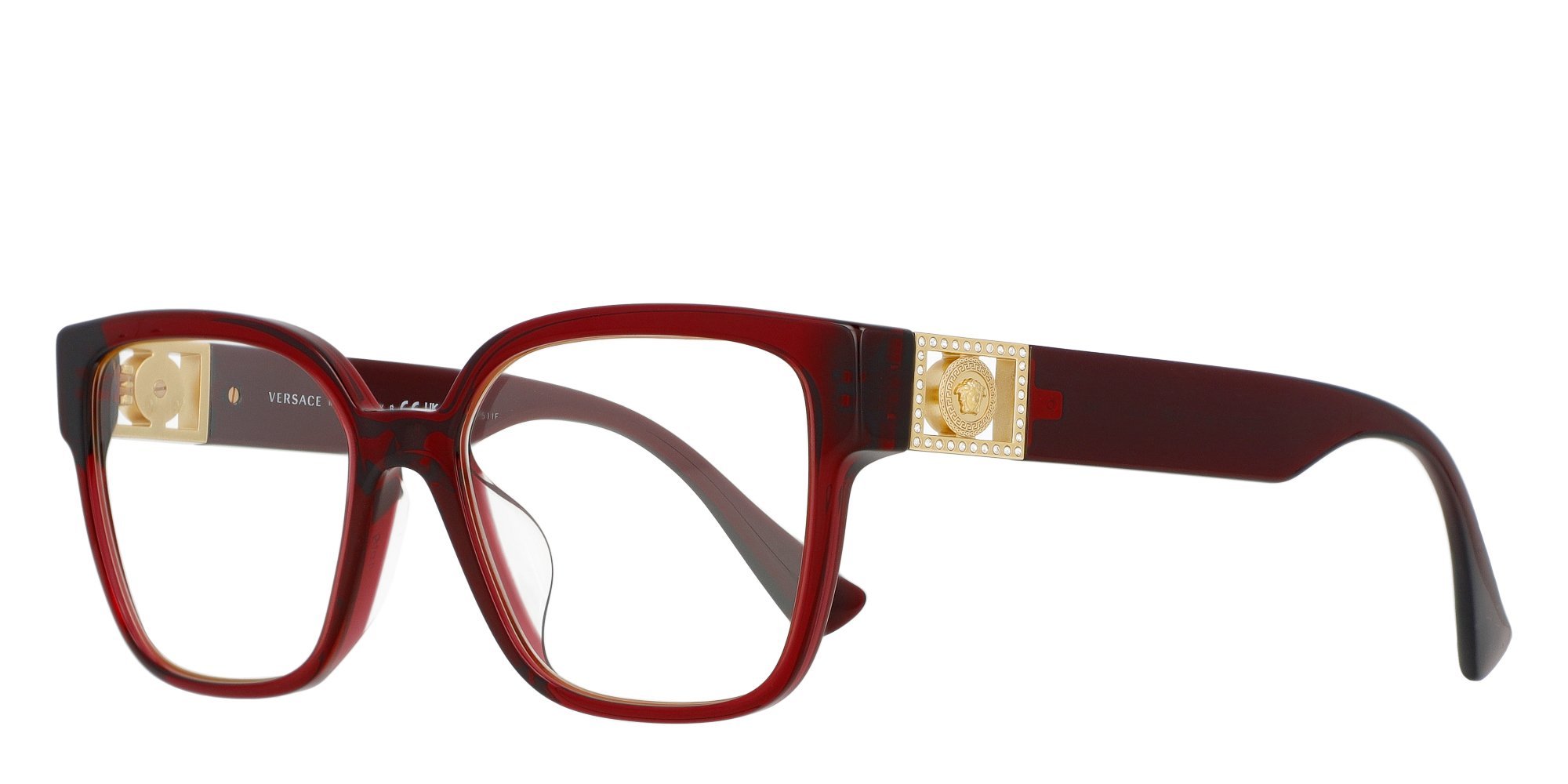 Elevate your style with the women's Versace VE3329BF eyeglasses, exuding sophisticated charm. Crafted with square rims made of strong and durable yet lightweight plastic, these glasses offer a comfortable fit. The thick browline and subtle wingtips add an element of elegance to their design. Accentuated by the iconic Medusa head at each corner of the square frames, these designer eyeglasses not only showcase your penchant for luxury fashion accessories but also highlight your appreciation for couture craftsmanship. Step out in confidence, making a statement that reflects your impeccable taste.