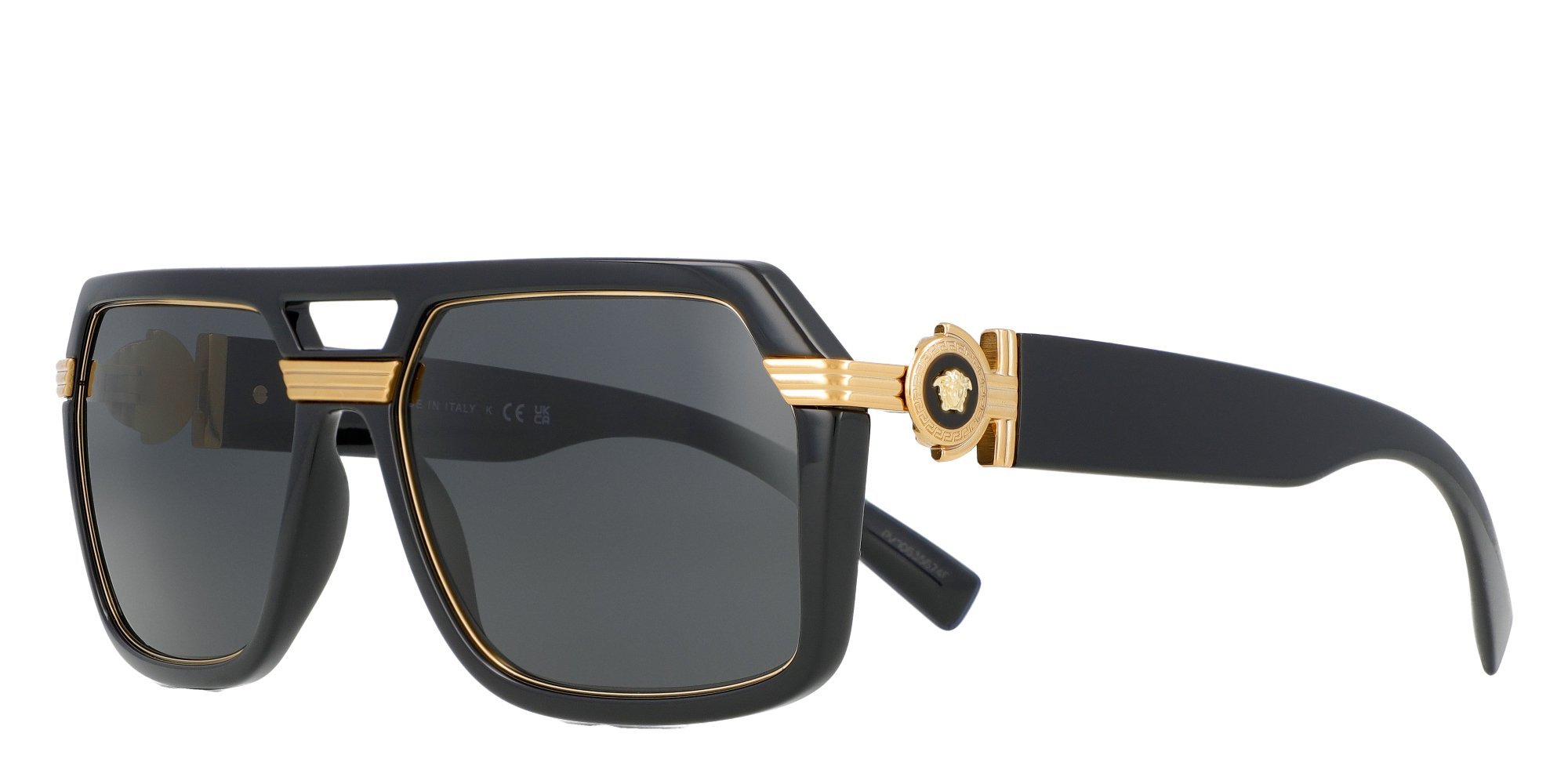 Versace is renowned for elevated style and meticulous attention to detail, and these VE4399 sunglasses for men beautifully exemplify both qualities. The aviator-style frames are crafted from lightweight and lustrous plastic, providing a durable option for your everyday wear. The skull temples gently curve inward, ensuring a secure fit during your active lifestyle. Adding a touch of designer flair, the brand's iconic Medusa medallion graces the brow end of these sunglasses, infusing classic aviator styling with unmistakable Versace sophistication.