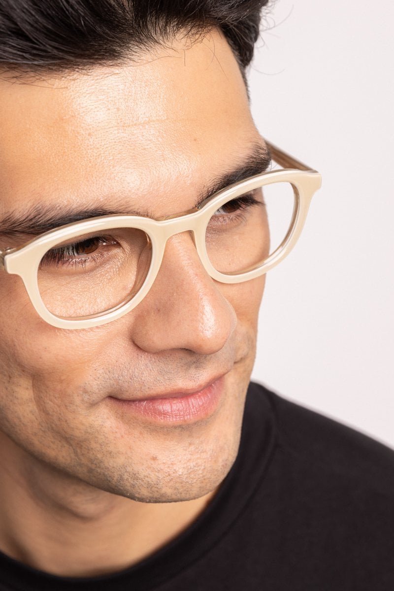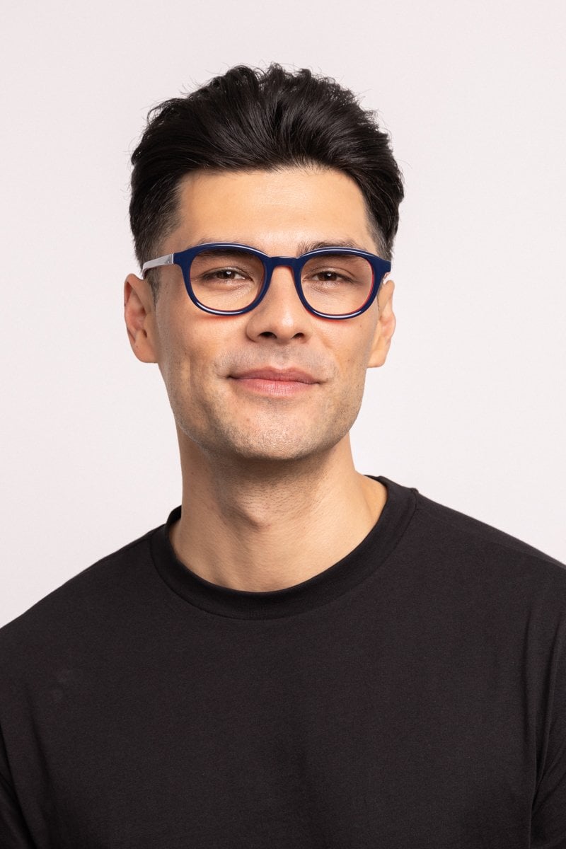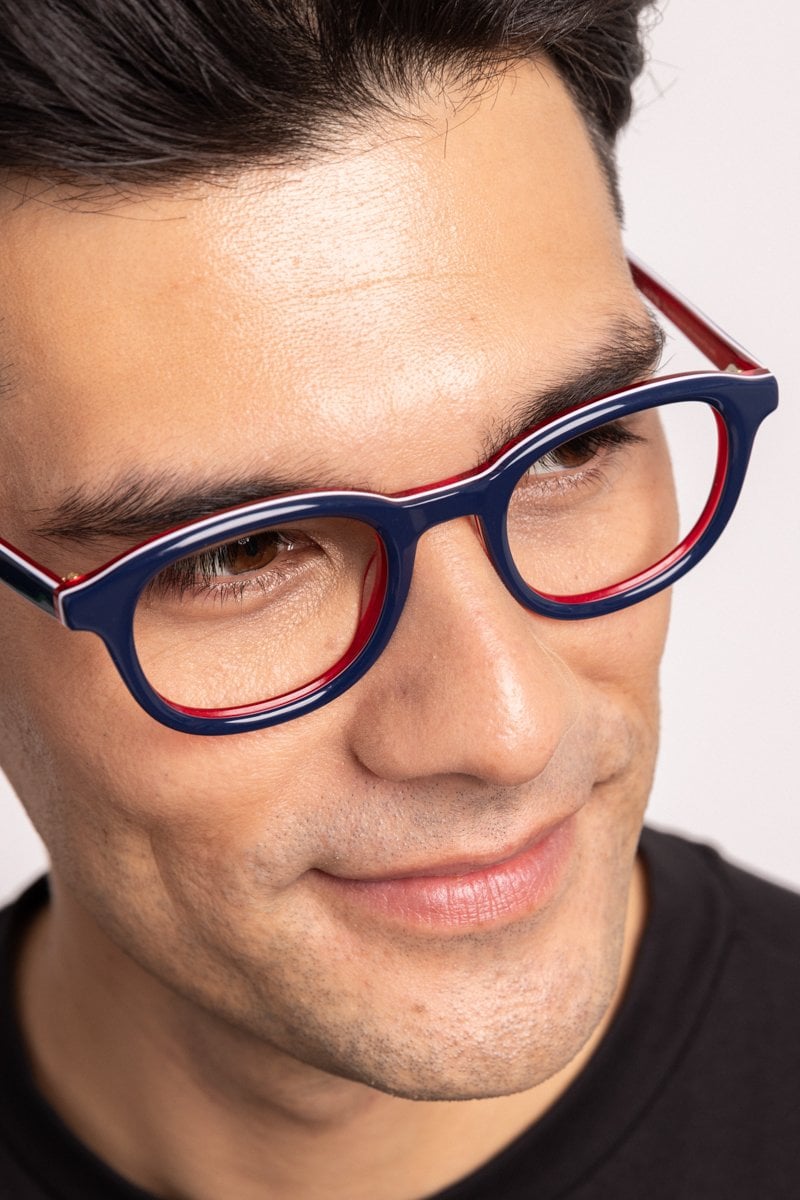 Layered multicolour acetate frame in classic d-frame silhouette.