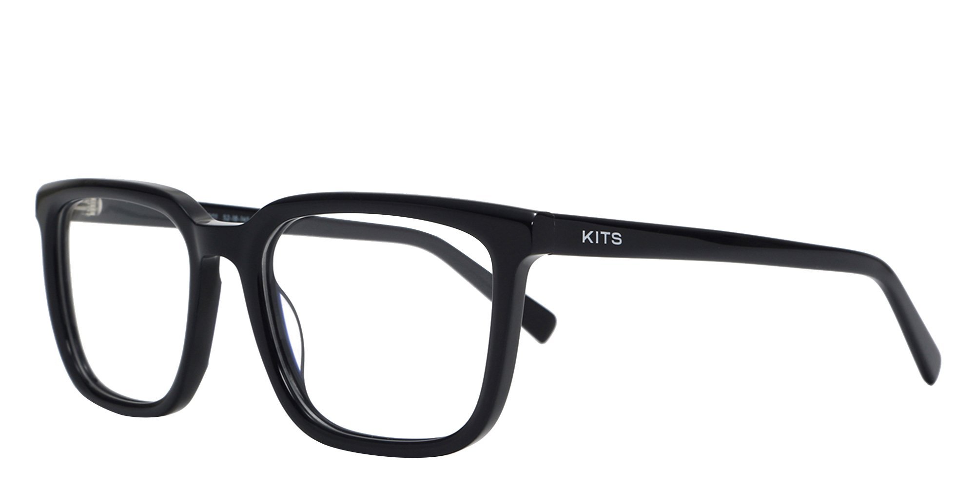 - KITS signature logo on left temple