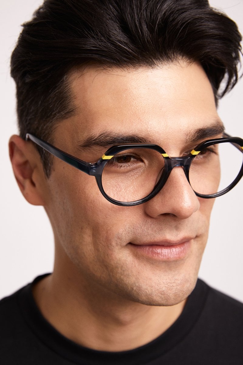 - Made from acetate laminated in stripes of contrasting colours