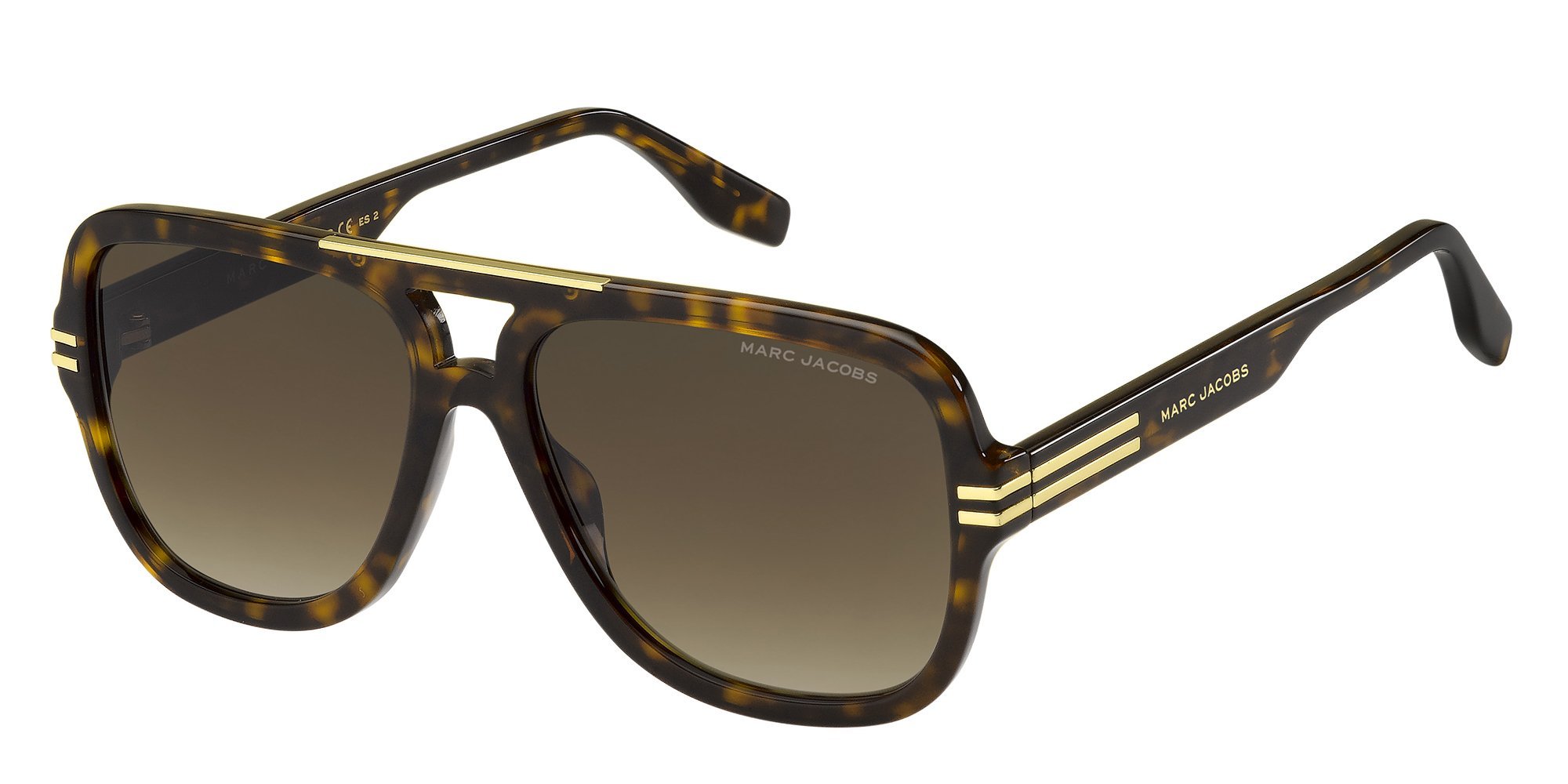 Be seen in style with The Marc Jacobs MARC 637/S, men's sunglasses capturing the expressive, contemporary aesthetic Marc Jacobs is renowned for. The double-bridge pilot frame, characterized by thick acetate construction and unique details, makes this pair a must-have for fans. Note the sleek metal brow bar, iconic double metal trims on the temples, and the designer's logo along the arms. Available with gradient and solid lenses in different seasonal colorways.