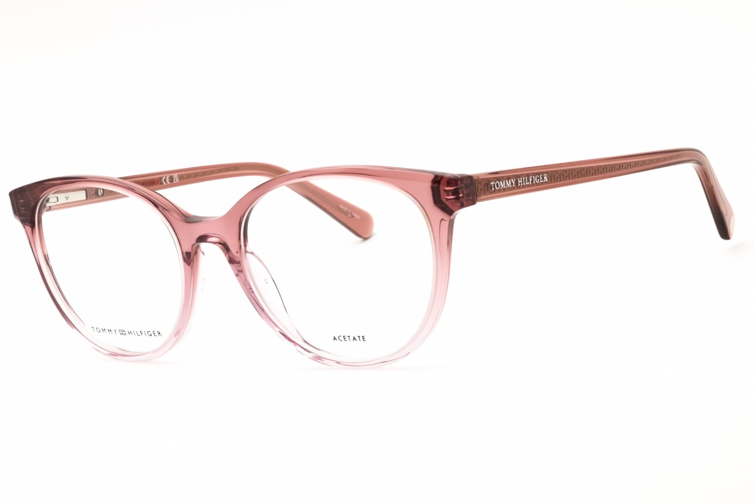 Embrace elegance with these women's eyeglasses from the Tommy Hilfiger TH 1888 collection. Featuring cat-eye frames in acetate, the signature Tommy Hilfiger texture on the metal core is visible on the inside of the temples. Whether in a plain color or a multi-hue motif, glittery or clear, these eyeglasses embody the glamorous femininity that defines both oversize and slender structures. The flexible hinges ensure the comfort of these sophisticated Tommy Hilfiger glasses, making them suitable for anytime, anywhere, to complete truly unique outfits.