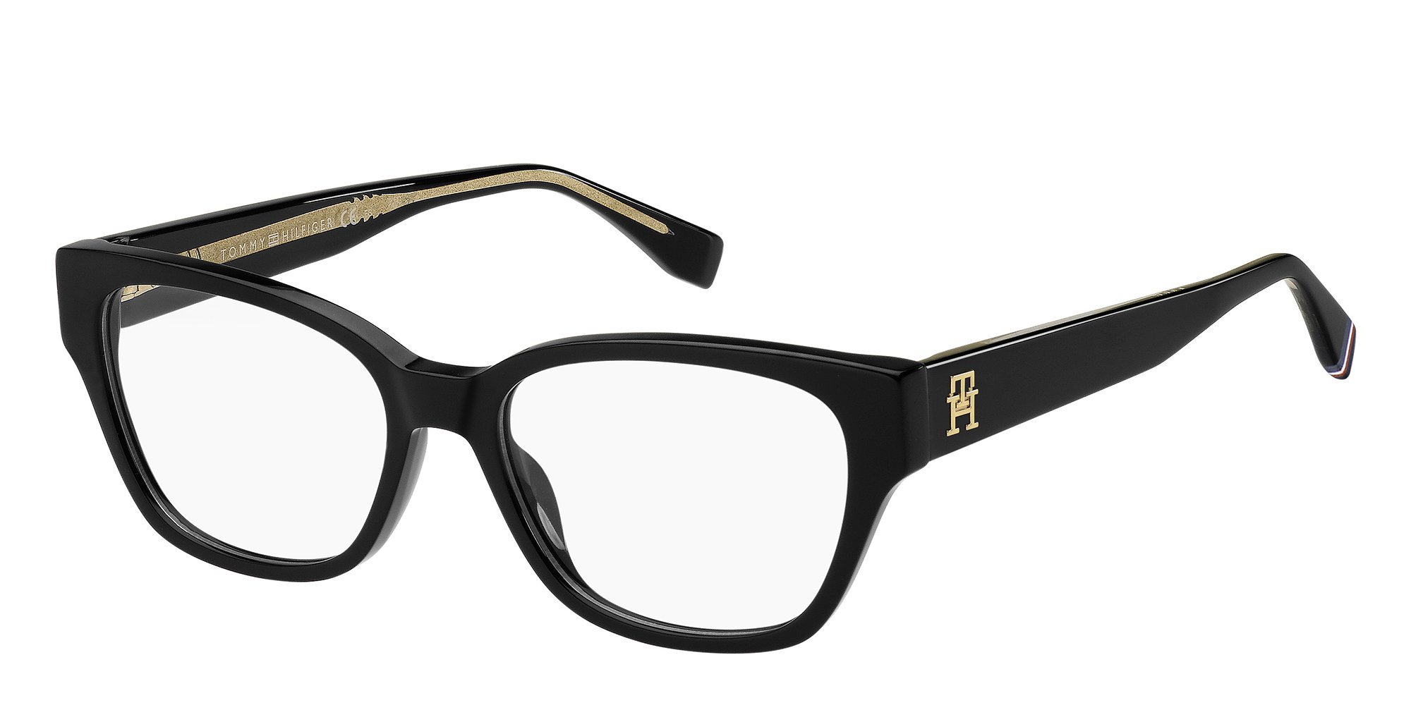 Embrace effortless contemporary elegance with the Tommy Hilfiger TH 2001 eyeglasses for women. The bold and multifaceted silhouette of the acetate frame is sure to get noticed. The metal Tommy Hilfiger monogram accents the maxi temples, making this accessory a must-have for a preppy touch to everyday looks.