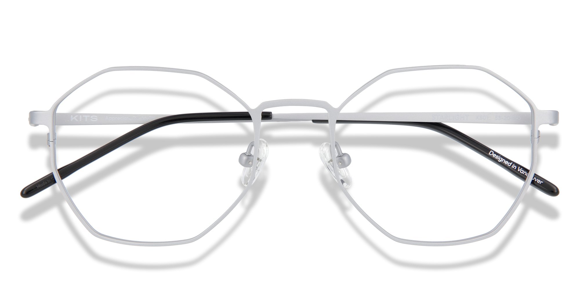 - KITS logo on the left temple