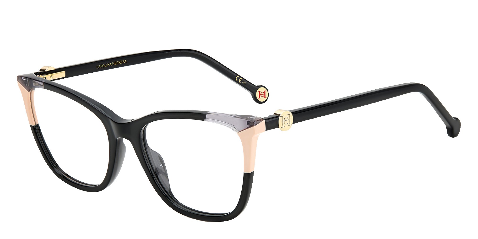 Indulge in timeless elegance with the Carolina Herrera CH 0057 "Essential" optical glasses. These glasses feature full-acetate frames with light temples and a signature CH monogram metal embellishment. The squared cateye silhouette is elevated by contrasting inserts, offering a sophisticated yet versatile look. Flex hinges and tonal temples with iconic CH-monogram end tips complete this optical style.