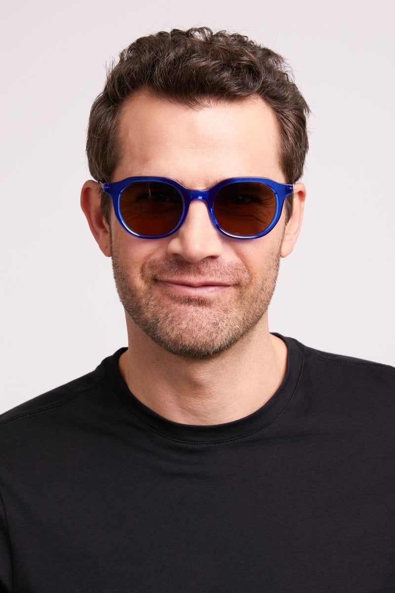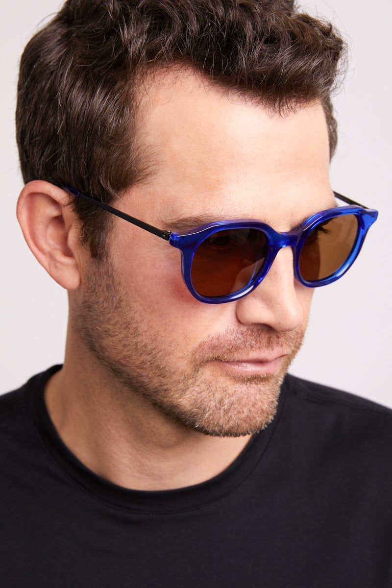 Everyday sunglasses with textured acetate fronts and lightweight metal temples.