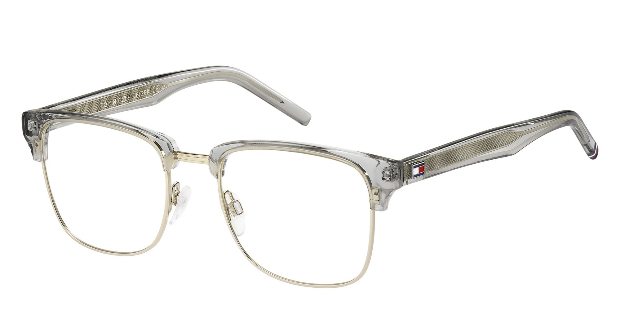 Timeless silhouette and a combination of materials define the Tommy Hilfiger TH 1988 eyeglasses, designed to unite style and comfort. The browline is in stainless steel and acetate, supported by practical nose pads and accompanied by acetate temples. The iconic metal tab with the Tommy Hilfiger flag accents the look, ensuring its recognizability.
