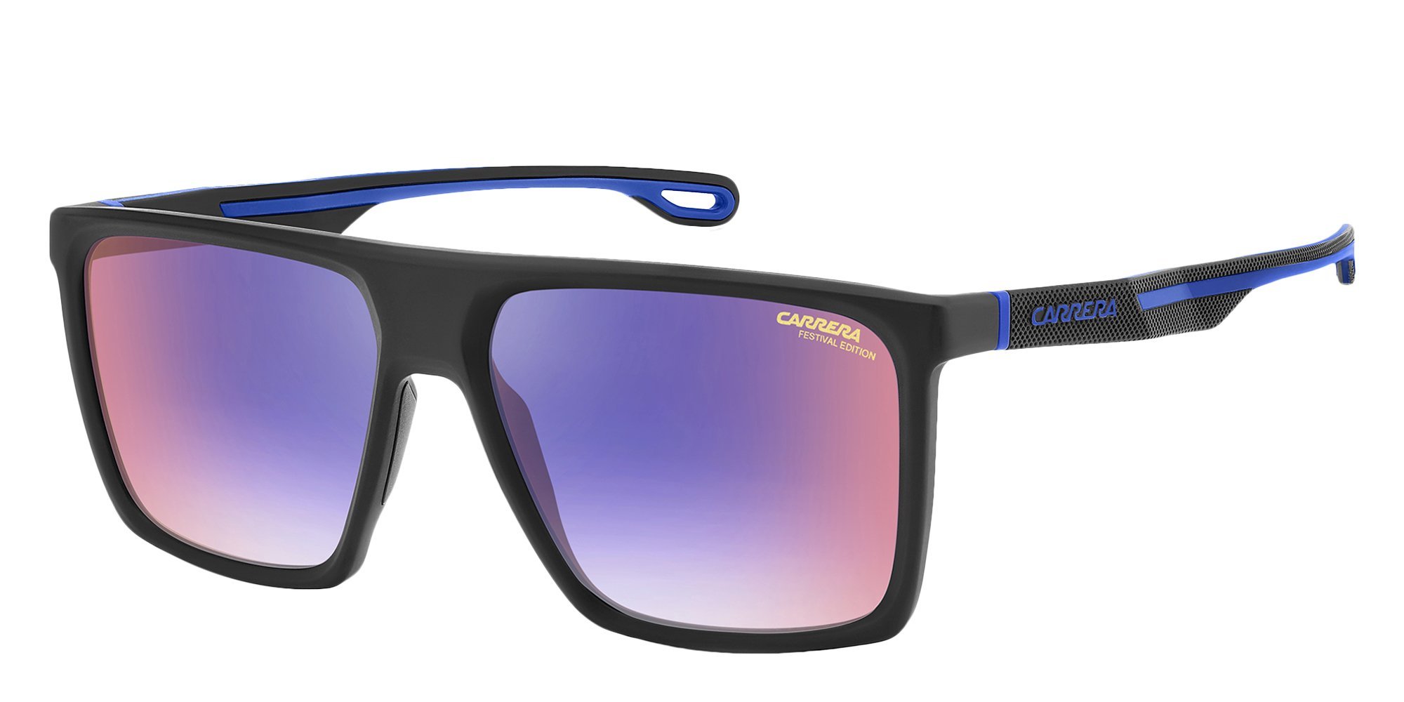 The Carrera 4019/S sunglasses are inspired by the world of sport, seamlessly blending into street style trends. Designed for adult men, these full-rim rectangular sunglasses feature a flat topline and easy-to-wear square shape. The temples are injection-moulded with two different materials and trimmed by rubber inserts for stability and a two-tone look that echoes the Carrera flag. The frames can be fitted with prescription lenses, while the off-the-shelf versions come in mirrored, polarized, and ultra-polarized options. Made from eco-polyamide, these sunglasses are as durable as they are stylish.