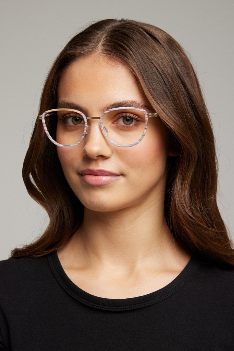Hybrid cat eye frame combining ultra-lightweight steel structure and thin in-set acetate rims