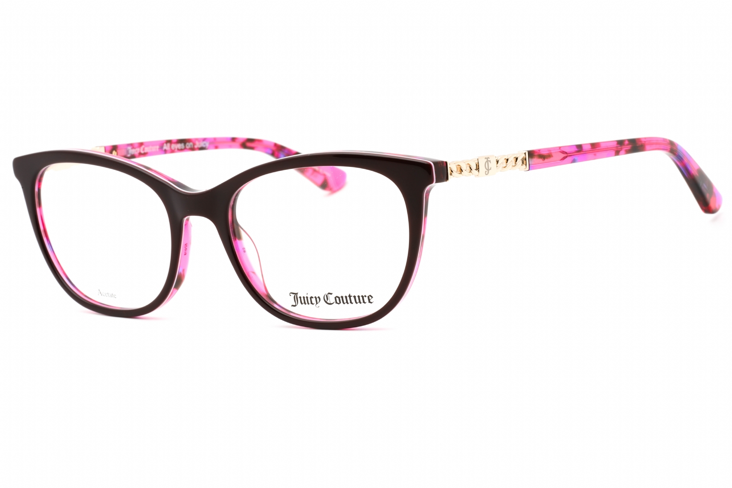 Step out in style with Juicy Couture's JU 173 glasses, a glamorous choice for the modern woman. Founded in 1997, Juicy Couture has consistently merged luxury and playfulness, making their eyewear a favorite among fashion enthusiasts. The cat-eye shape adds a vintage flair while the vibrant acetate material showcases your individuality. Elevate your look effortlessly with these stunning frames that embody sophistication and charm.