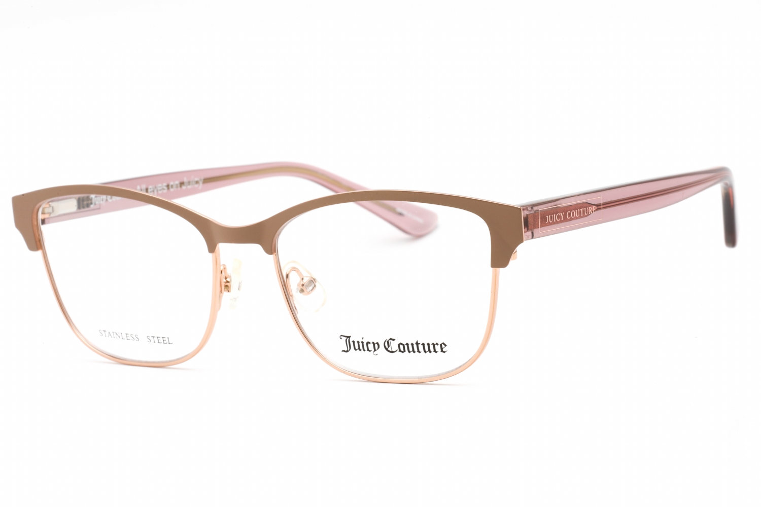 Juicy Couture, founded in 1997, exudes Hollywood glamour and unapologetic style. The JU 220 cat-eye frames embody feminine charm and modern sophistication, perfect for trendsetters. Crafted from high-quality acetate, they offer durability and a lightweight feel, making them ideal for everyday wear. Step out in confidence wearing Juicy Couture's striking eyewear that complements your unique personality and elevates your fashion game.
