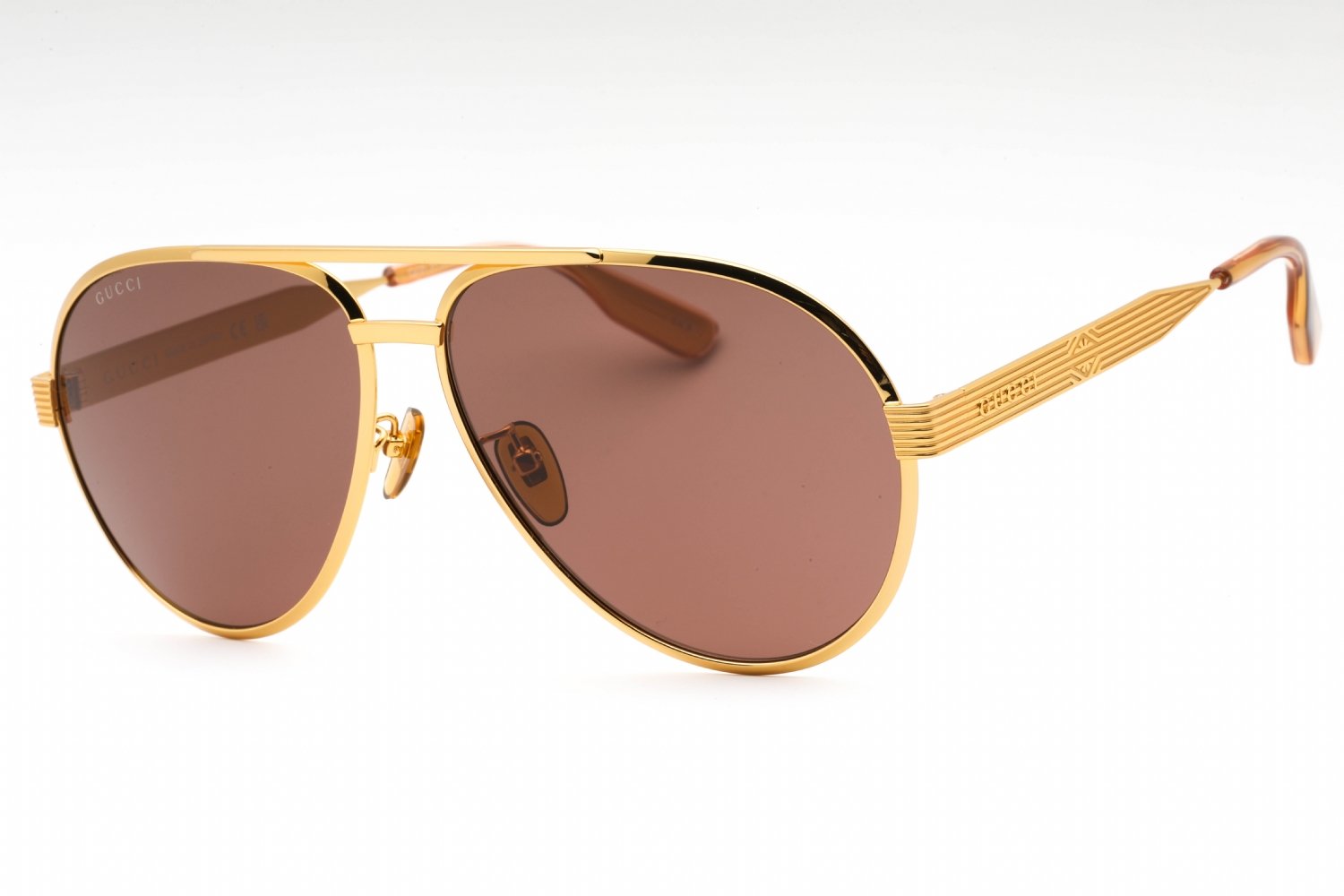 Step into sophistication with Gucci's GG1513S aviator glasses, expertly crafted from premium metal. Founded in Florence in 1921, Gucci has long been synonymous with luxury and innovation. This frame elegantly balances classic style with modern appeal, making it perfect for the discerning gentleman. Elevate your eyewear collection with this iconic piece that exudes confidence and flair.