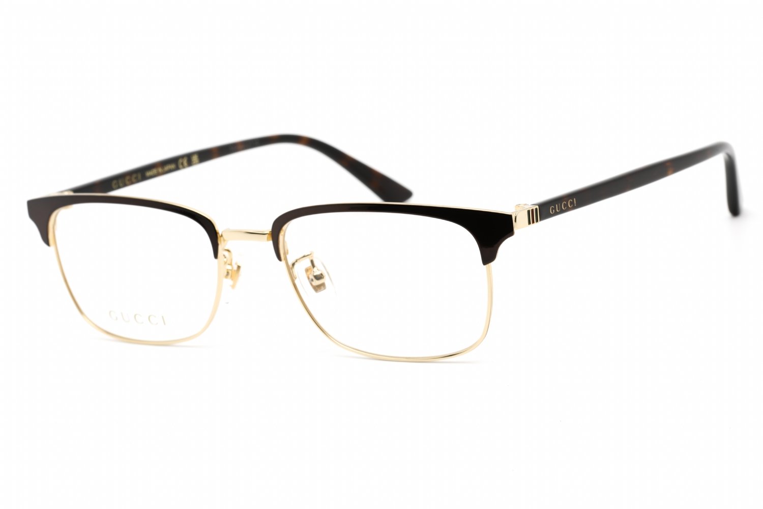 The Gucci GG0131O Rectangle Optical frame combines modern minimalism with high-end craftsmanship. This sleek metal frame offers a clean, rectangular shape that flatters a variety of face shapes. Subtle Gucci branding on the temples adds an understated touch of luxury, making this a refined choice for everyday optical wear.