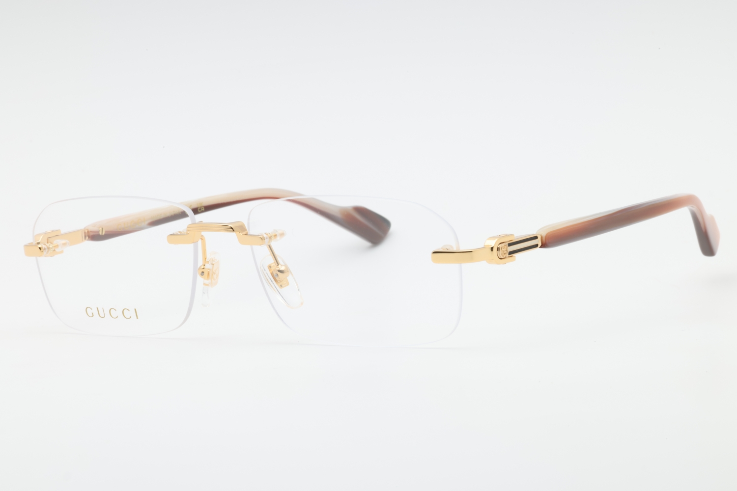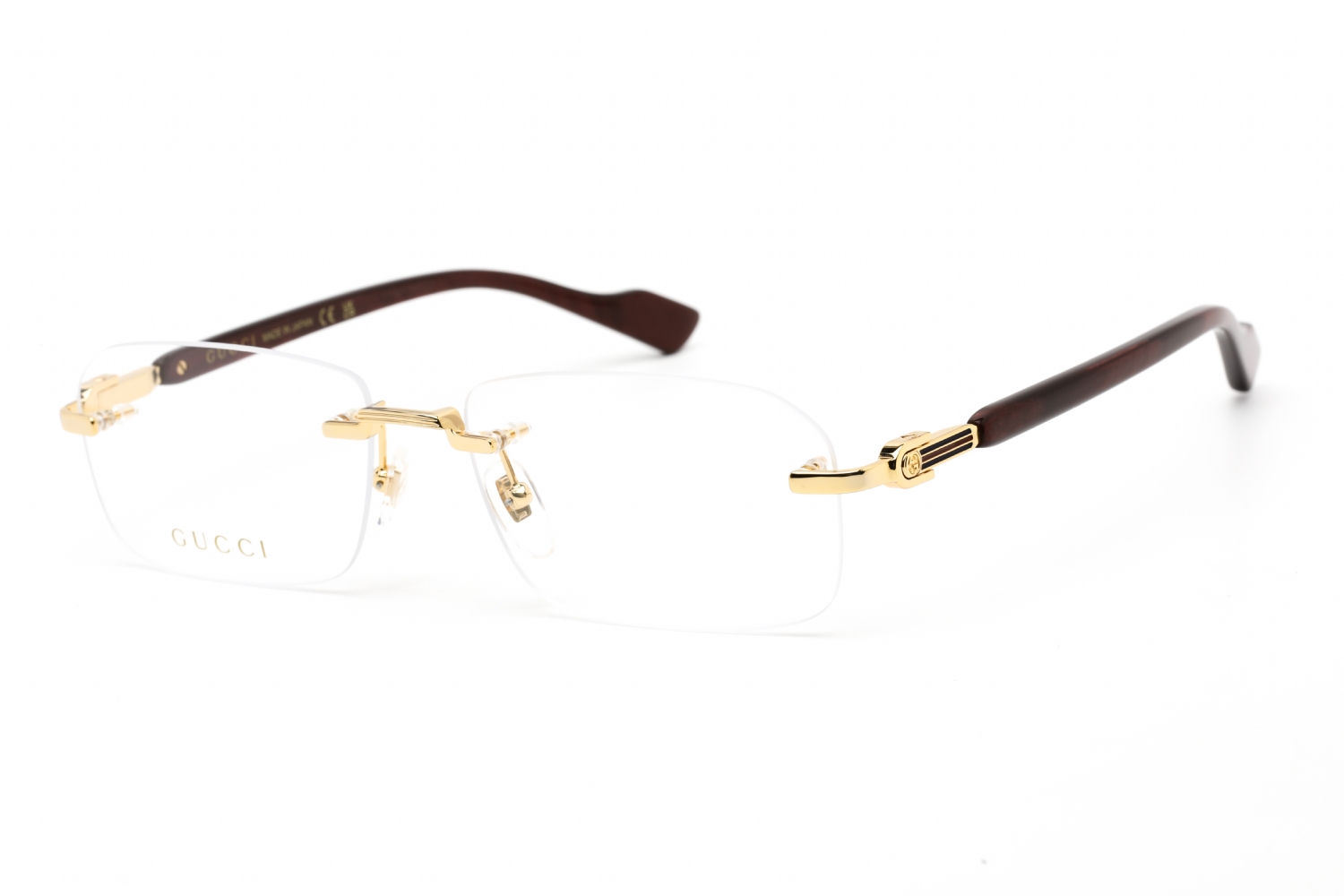 The Gucci GG1221O Rectangle Optical frames offer a minimalist design crafted from lightweight metal. These sleek, rectangular frames provide a contemporary look with a comfortable fit. Subtle Gucci branding on the temples adds a refined, luxurious touch to this timeless accessory.