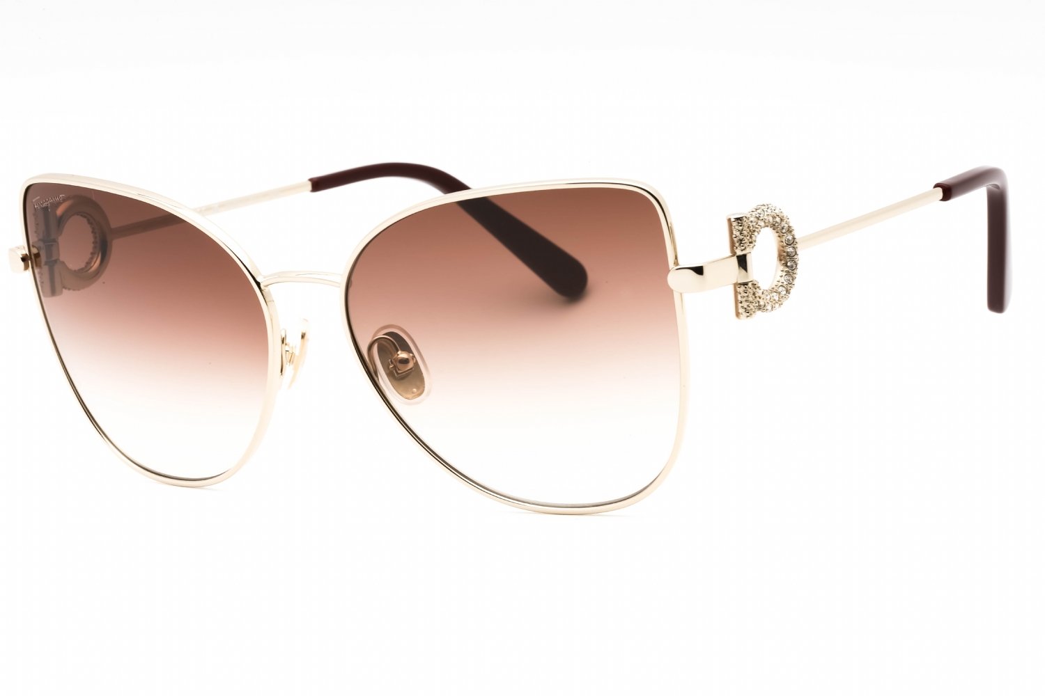Salvatore Ferragamo SF296SR in Gold. This model features an eye catching shape to complement your facial features.The frame is made from quality materials, balancing weight and strength for your ultimate comfort.
