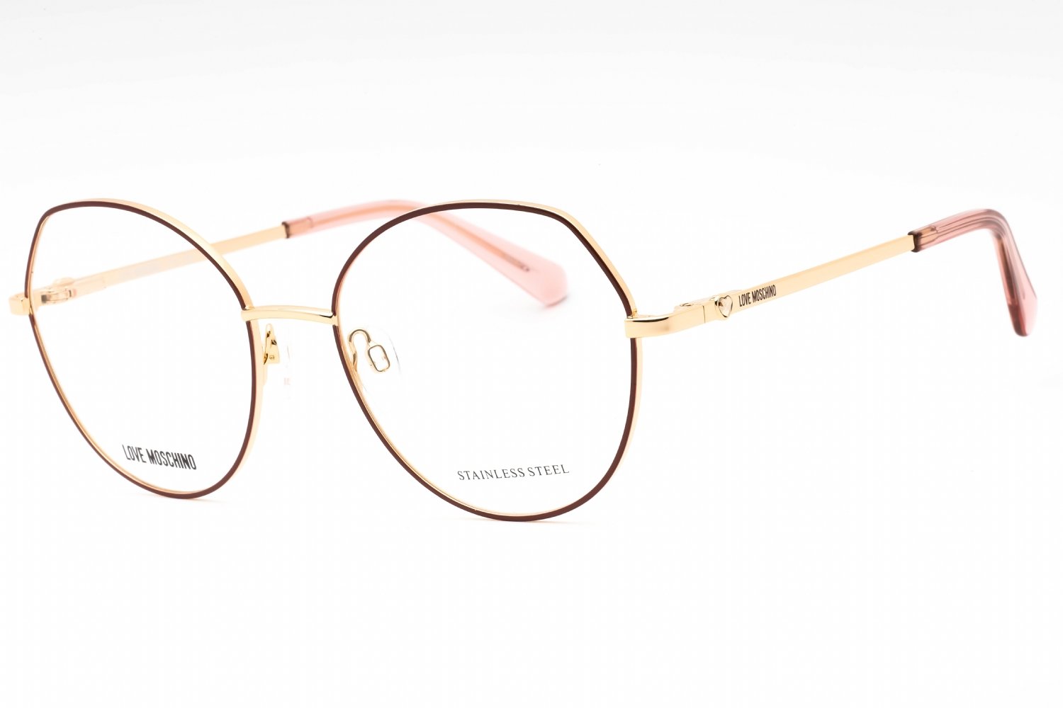 Moschino MOL634 in Burgundy Gold. This model features an eye catching shape to complement your facial features.The frame is made from quality materials, balancing weight and strength for your ultimate comfort.