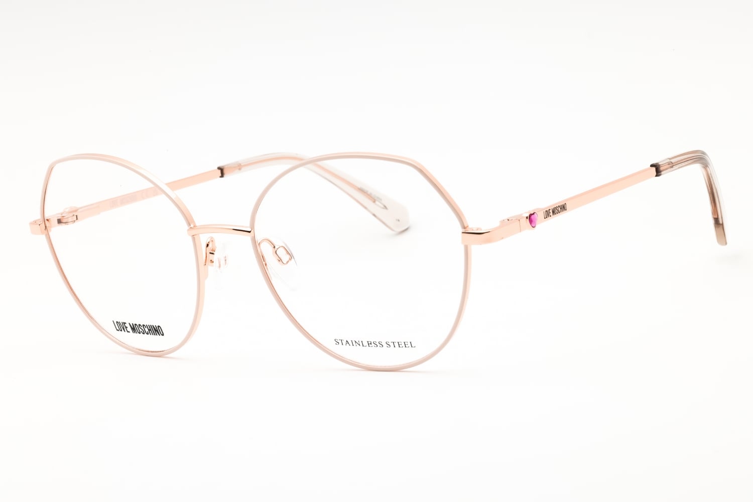 Moschino MOL634 in Copper Gold Nude. This model features an eye catching shape to complement your facial features.The frame is made from quality materials, balancing weight and strength for your ultimate comfort.