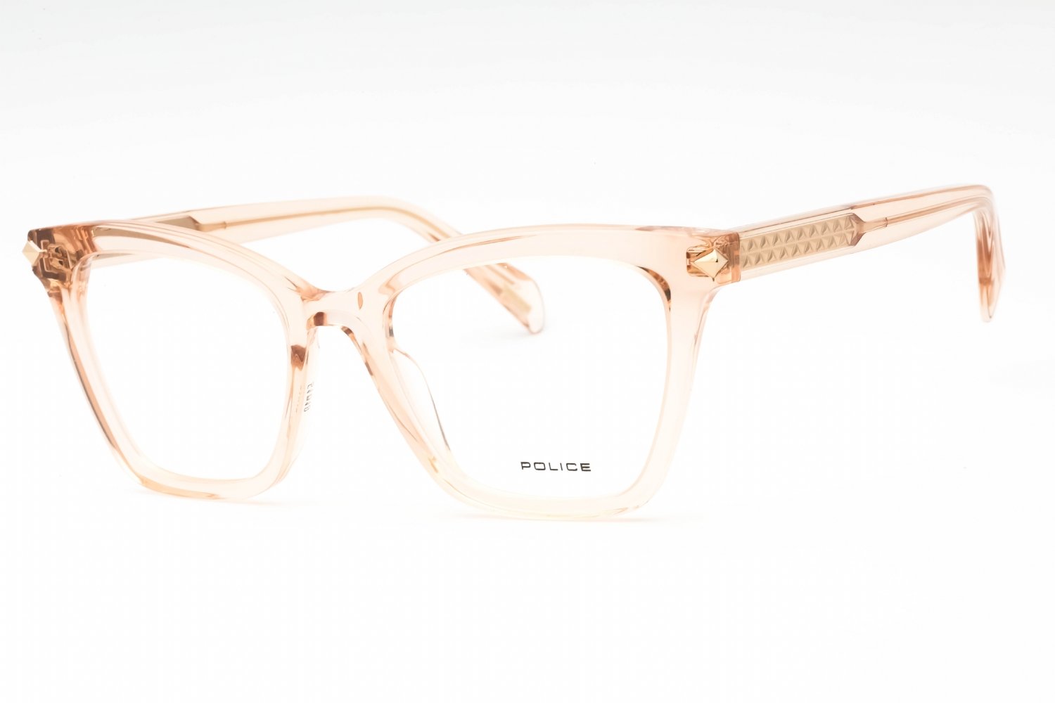 Police VPLF29M in Shiny Transparent Peach. This model features an eye catching shape to complement your facial features.The frame is made from quality materials, balancing weight and strength for your ultimate comfort.