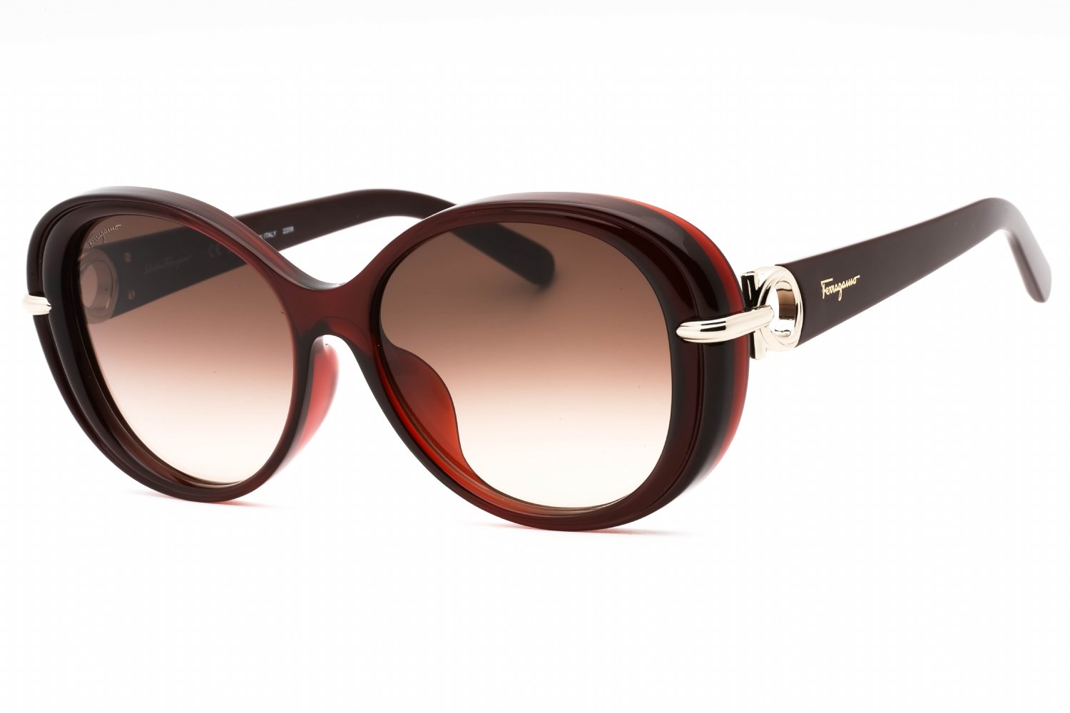 Salvatore Ferragamo SF1076SLB in Wine. This model features an eye catching shape to complement your facial features.The frame is made from quality materials, balancing weight and strength for your ultimate comfort.