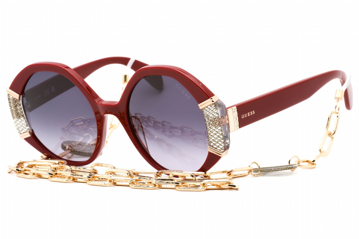Guess GU7874 in Shiny Bordeaux. This model features an eye catching shape to complement your facial features.The frame is made from quality materials, balancing weight and strength for your ultimate comfort.
