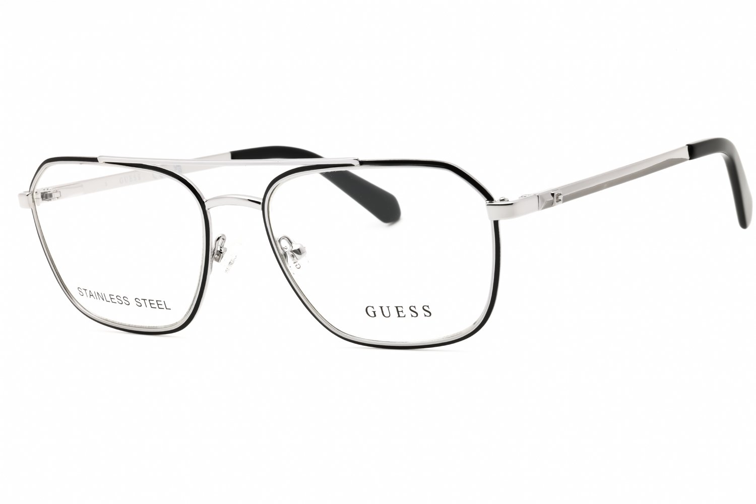 Guess GU50049 in Shiny Light Nickeltin. This model features an eye catching shape to complement your facial features.The frame is made from quality materials, balancing weight and strength for your ultimate comfort.
