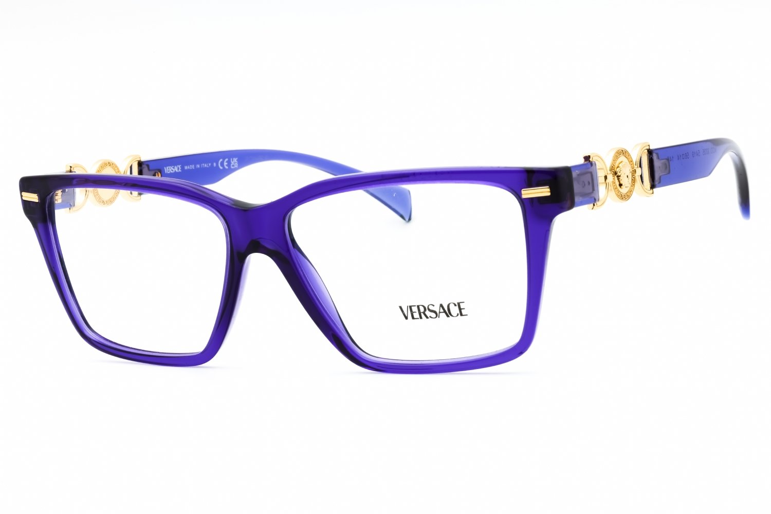 Versace 0VE3335 in Purple. This model features an eye catching shape to complement your facial features.The frame is made from quality materials, balancing weight and strength for your ultimate comfort.