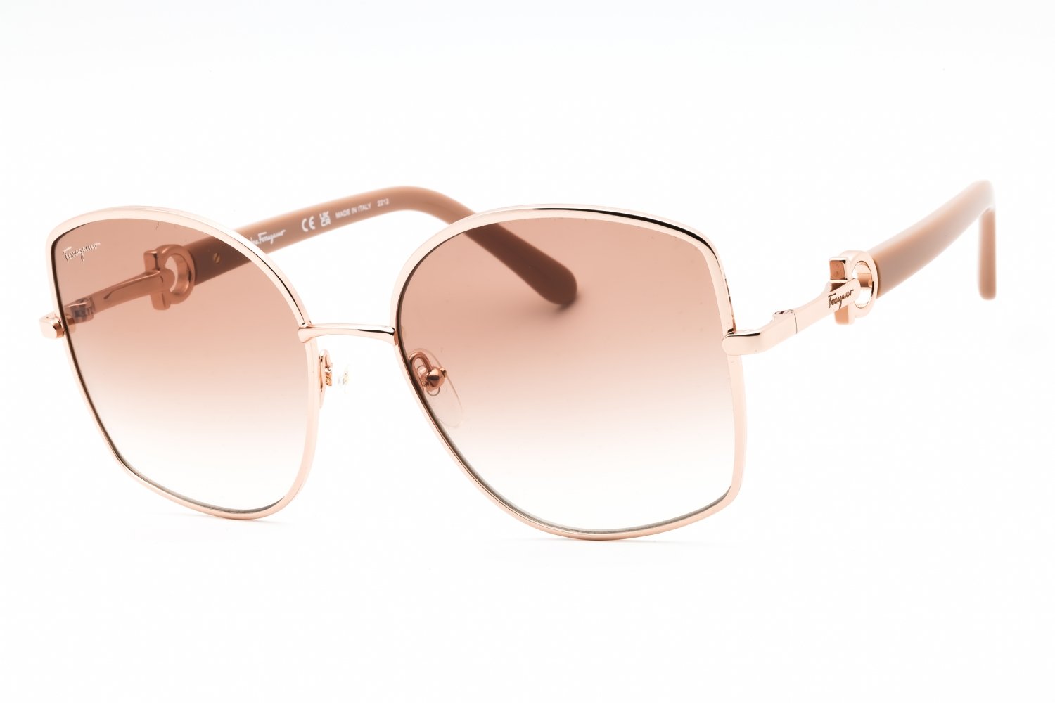 Salvatore Ferragamo SF304S in Rose Gold. This model features an eye catching shape to complement your facial features.The frame is made from quality materials, balancing weight and strength for your ultimate comfort.