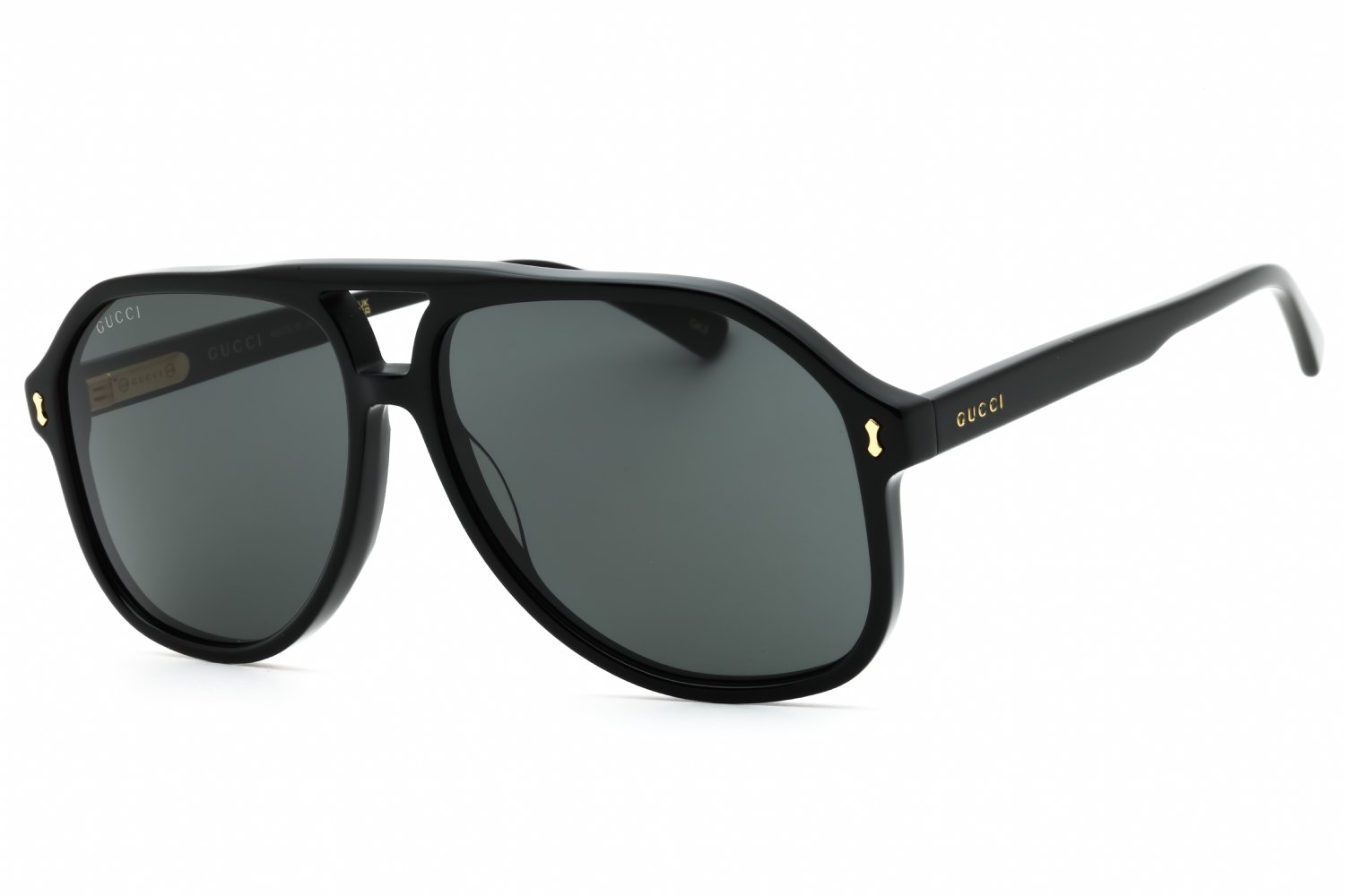 Gucci GG1042S in Black-Black-Grey. This model features an eye catching shape to complement your facial features.The frame is made from quality materials, balancing weight and strength for your ultimate comfort.