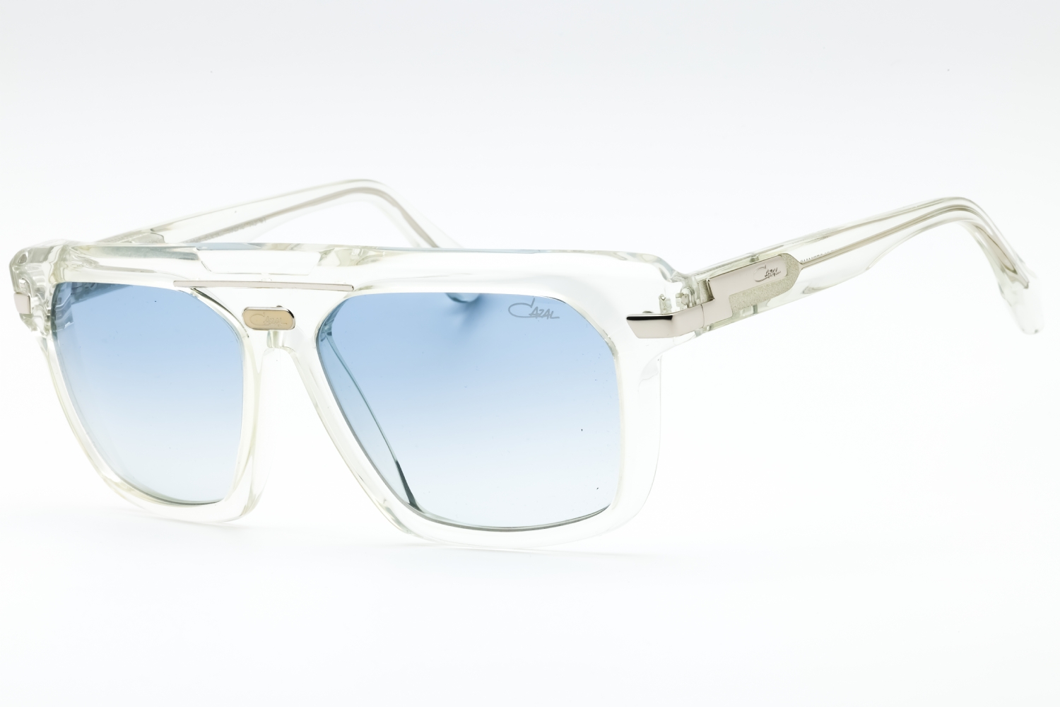Cazal 8040 in Crystal-Silver. This model features an eye catching shape to complement your facial features.The frame is made from quality materials, balancing weight and strength for your ultimate comfort.