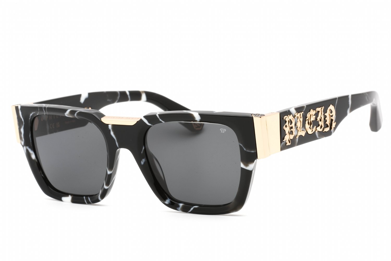 Philipp Plein SPP095M in Patterned Black. This model features an eye catching shape to complement your facial features.The frame is made from quality materials, balancing weight and strength for your ultimate comfort.
