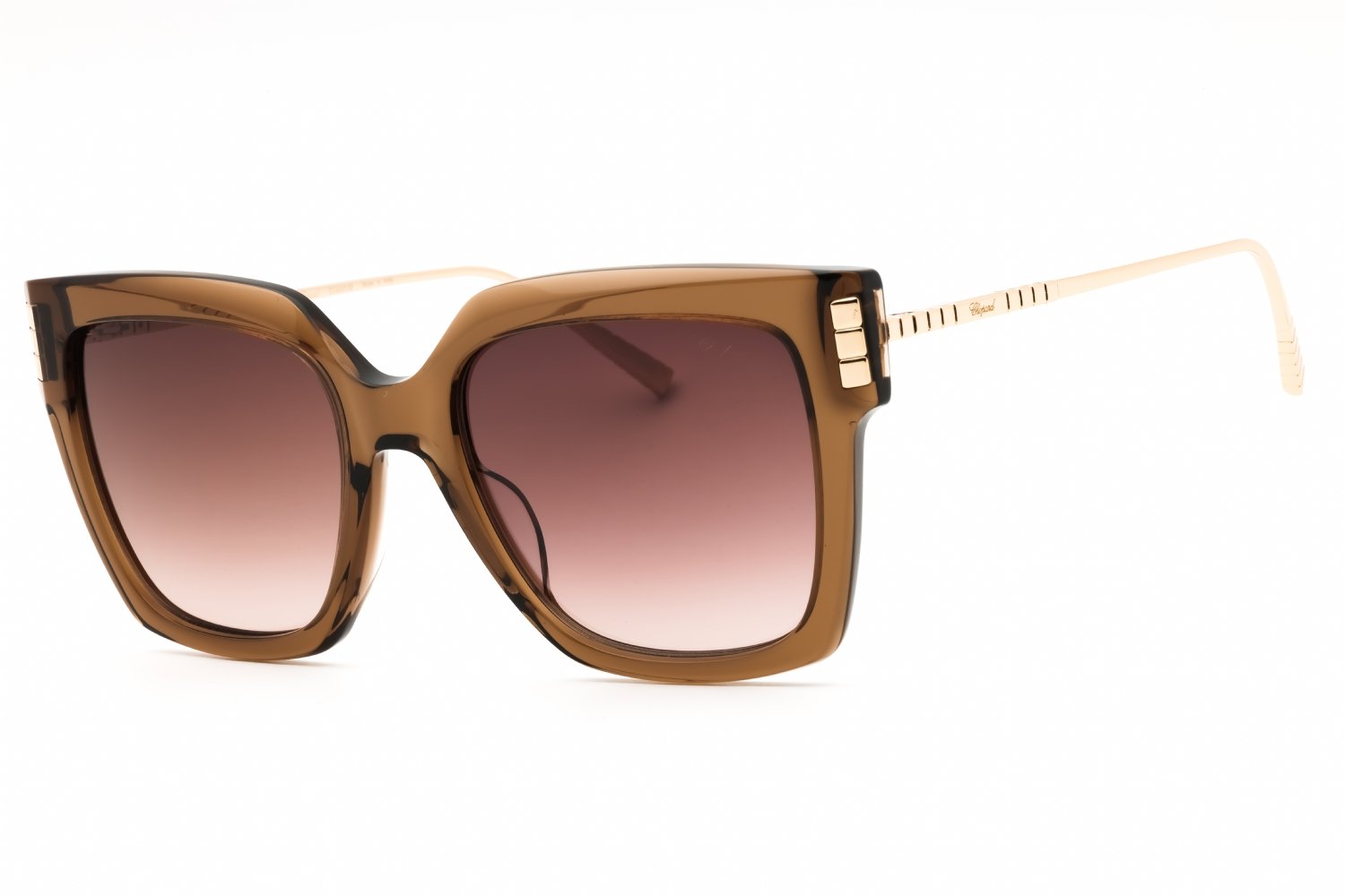 Chopard SCH353M in Shiny Transparent Plum Purple. This model features an eye catching shape to complement your facial features.The frame is made from quality materials, balancing weight and strength for your ultimate comfort.