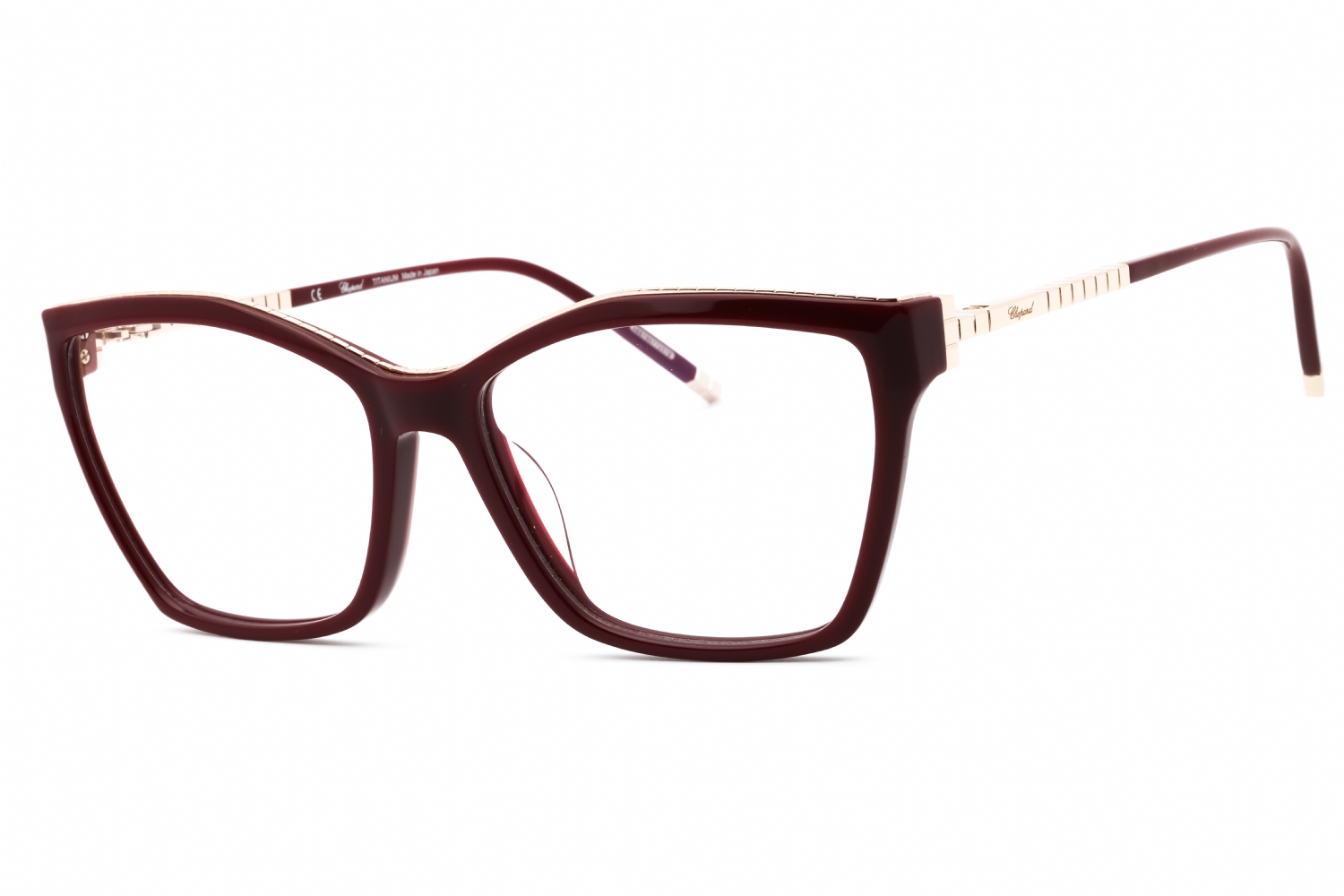 Chopard VCH321M in Burgundy. This model features an eye catching shape to complement your facial features.The frame is made from quality materials, balancing weight and strength for your ultimate comfort.