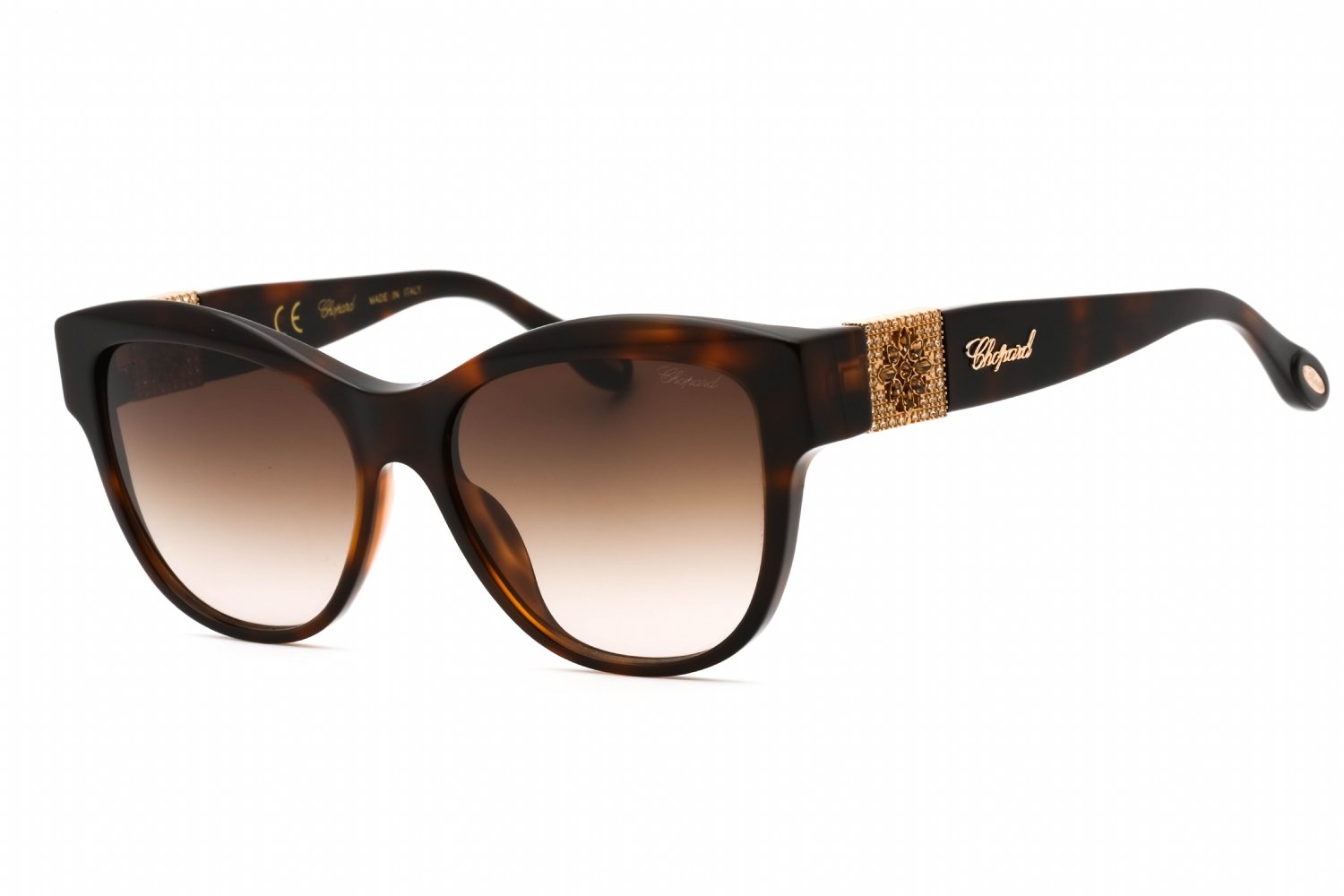 Chopard SCH287S in Tortoise. This model features an eye catching shape to complement your facial features.The frame is made from quality materials, balancing weight and strength for your ultimate comfort.